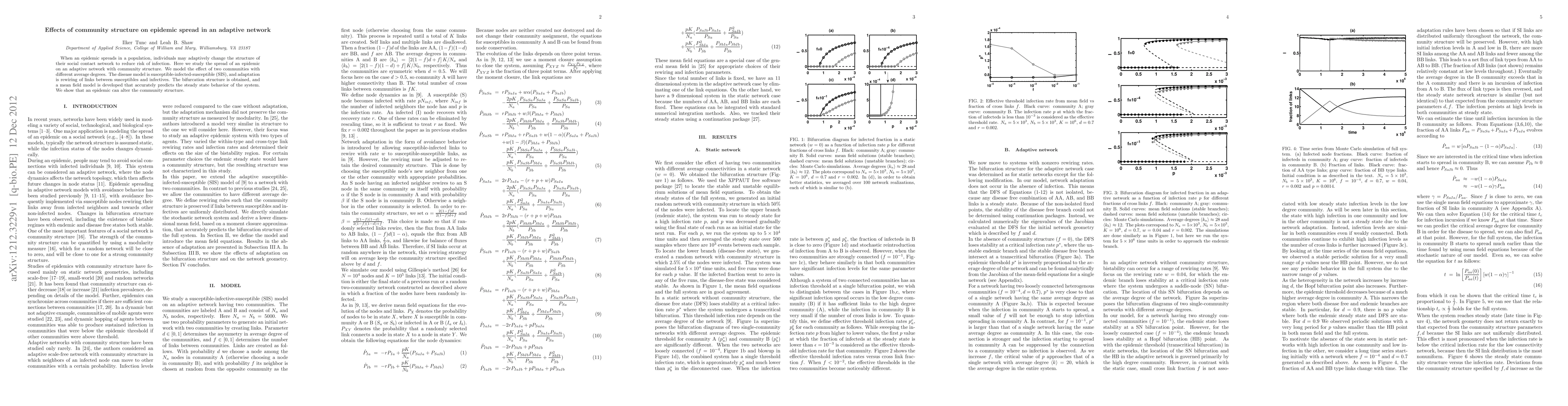 The study models the spread of an epidemic on an adaptive network with community structure using the SIS disease model and link rewiring between susceptibles and infectives. A mean-field model is developed to predict steady-state behavior.