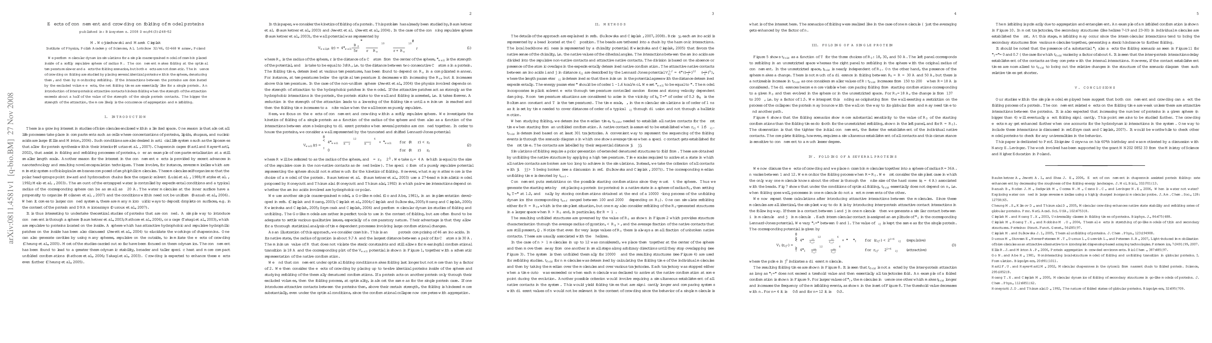 We perform molecular dynamics simulations for a simple coarse-grained model of crambin placed inside of a softly repulsive sphere of radius R. The confinement makes folding at the optimal temperature slower and affects the folding scenarios, but both effects are not dramatic. The influence of crowding on folding are studied by placing several identical proteins within the sphere, denaturing them, and then by monitoring refolding. If the interactions between the proteins are dominated by the excluded volume effects, the net folding times are essentially like for a single protein. An introduction of inter-proteinic attractive contacts hinders folding when the strength of the attraction exceeds about a half of the value of the strength of the single protein contacts. The bigger the strength of the attraction, the more likely is the occurrence of aggregation and misfolding.