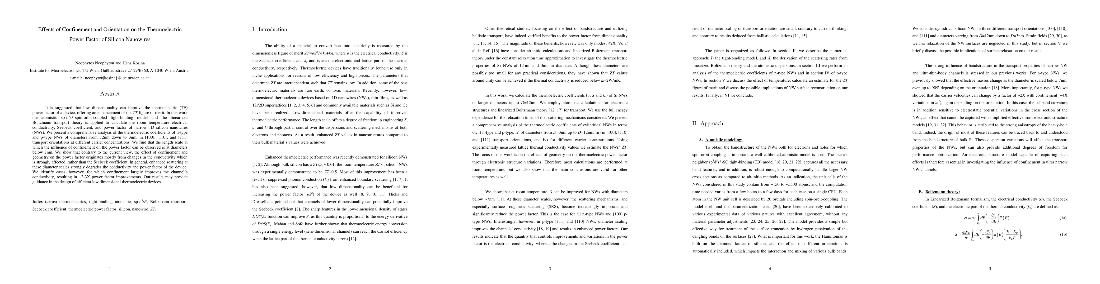 Research on silicon nanowires found that confinement and orientation can improve thermoelectric power factor, with significant improvements seen at diameters below 7nm. This suggests a new direction for designing efficient low-dimensional thermoelectric devices.