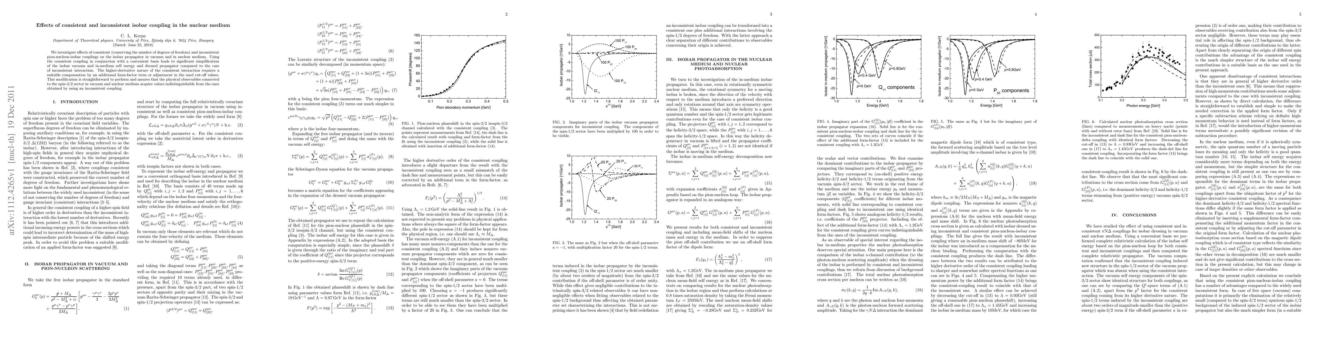 We investigate effects of consistent (conserving the number of degrees of freedom) and inconsistent pion-nucleon-isobar couplings on the isobar propagator in vacuum and in nuclear medium. Using the consistent coupling in conjunction with a convenient basis leads to significant simplification of the isobar vacuum and in-medium self energy and dressed propagator compared to the case of inconsistent interaction. The higher-derivative nature of the consistent interaction requires a suitable compensation by an additional form-factor term or adjustment in the used cut-off values. This modification is straightforward to perform and assures that the physical observables connected to the spin-3/2 sector in vacuum and nuclear medium acquire values indistinguishable from the ones obtained by using an inconsistent coupling.
