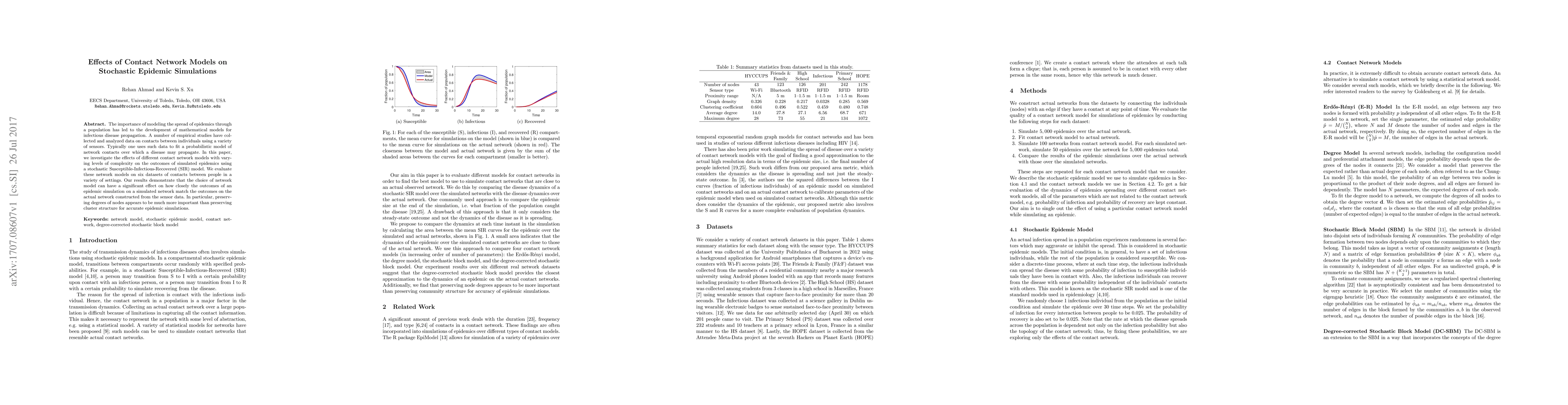The importance of modeling the spread of epidemics through a population has led to the development of mathematical models for infectious disease propagation. A number of empirical studies have collected and analyzed data on contacts between individuals using a variety of sensors. Typically one uses such data to fit a probabilistic model of network contacts over which a disease may propagate. In this paper, we investigate the effects of different contact network models with varying levels of complexity on the outcomes of simulated epidemics using a stochastic Susceptible-Infectious-Recovered (SIR) model. We evaluate these network models on six datasets of contacts between people in a variety of settings. Our results demonstrate that the choice of network model can have a significant effect on how closely the outcomes of an epidemic simulation on a simulated network match the outcomes on the actual network constructed from the sensor data. In particular, preserving degrees of nodes appears to be much more important than preserving cluster structure for accurate epidemic simulations.