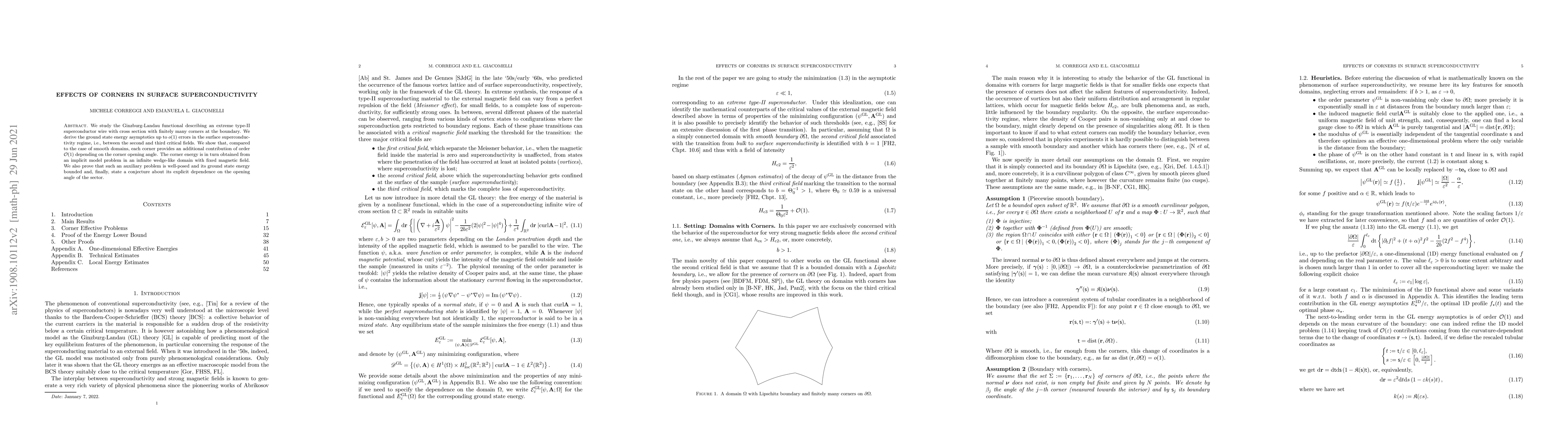 Researchers studied how corners in a superconducting wire affect its energy, finding that each corner adds an additional contribution of order 1 depending on the angle, which can provide insights into its behavior at high fields.