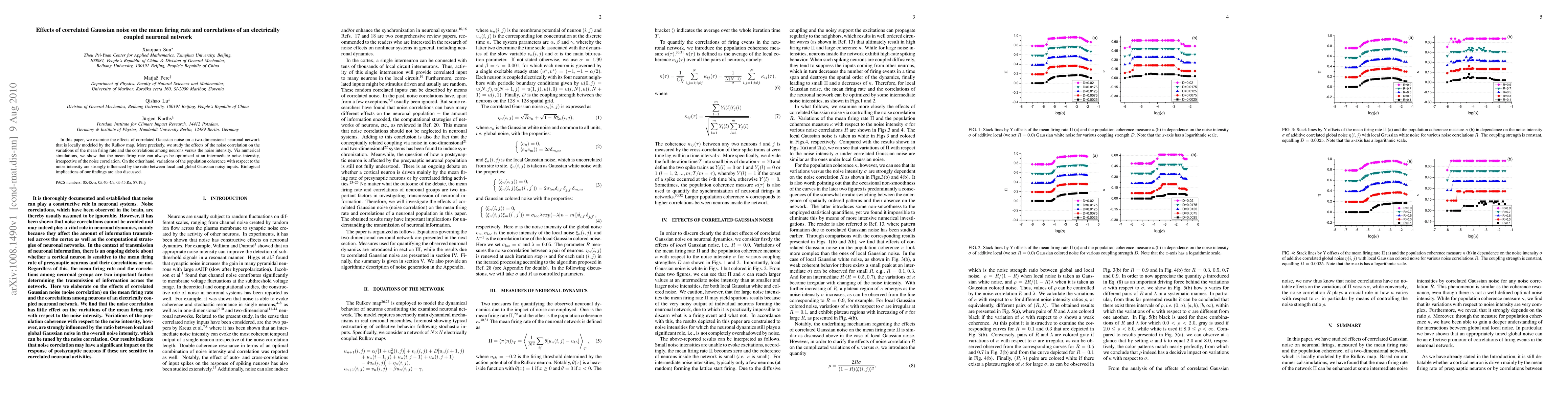 This paper investigates how correlated Gaussian noise impacts the mean firing rate and neuron correlations in a two-dimensional network modeled by the Rulkov map. Numerical simulations reveal that the mean firing rate is optimally adjusted at intermediate noise levels, while population coherence varies significantly based on the ratio of local to global noise inputs.