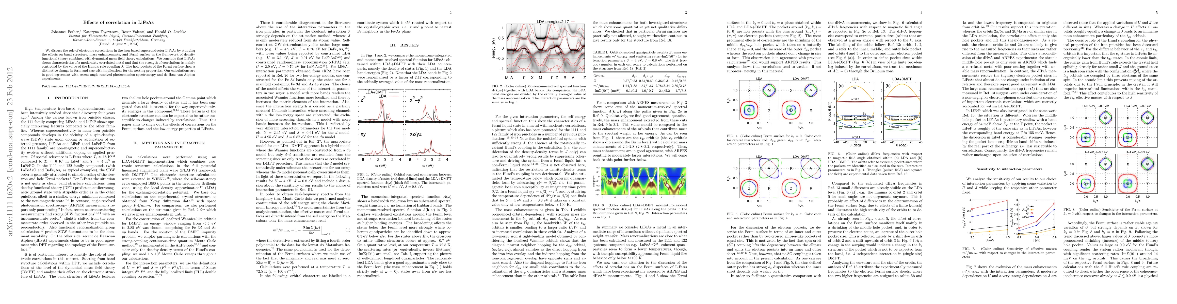 We discuss the role of electronic correlations in the iron-based superconductor LiFeAs by studying the effects on band structure, mass enhancements, and Fermi surface in the framework of density functional theory combined with dynamical mean field theory calculations. We conclude that LiFeAs shows characteristics of a moderately correlated metal and that the strength of correlations is mainly controlled by the value of the Hund's rule coupling J. The hole pockets of the Fermi surface show a distinctive change in form and size with implications for the nesting properties. Our calculations are in good agreement with recent angle-resolved photoemission spectroscopy and de Haas-van Alphen experiments.