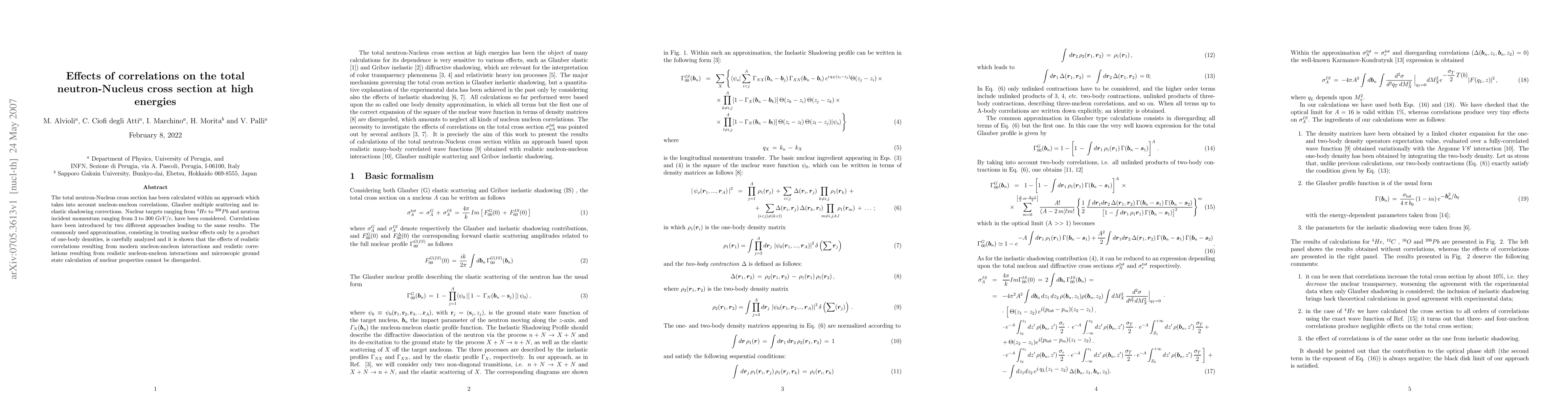 The total neutron-Nucleus cross section has been calculated within an approach which takes into account nucleon-nucleon correlations, Glauber multiple scattering and inelastic shadowing corrections. Nuclear targets ranging from 4He to 208Pb and neutron incident momentum ranging from 3 to 300 GeV/c, have been considered. Correlations have been introduced by two different approaches leading to the same results. The commonly used approximation, consisting in treating nuclear effects only by a product of one-body densities, is carefully analyzed and it is shown that the effects of realistic correlations resulting from modern nucleon-nucleon interactions and realistic correlations resulting from realistic nucleon-nucleon interactions and microscopic ground state calculation of nuclear properties cannot be disregarded.