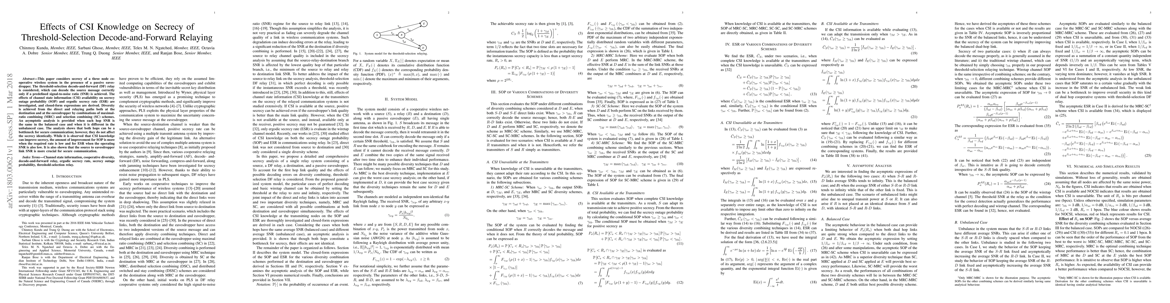 This paper considers secrecy of a three node cooperative wireless system in the presence of a passive eavesdropper. The threshold-selection decode-and-forward (DF) relay is considered, which can decode the source message correctly only if a predefined signal-to-noise ratio (SNR) is achieved. The effects of channel state information (CSI) availability on secrecy outage probability (SOP) and ergodic secrecy rate (ESR) are investigated, and closed-form expressions are derived. Diversity is achieved from the direct and relaying paths both at the destination and at the eavesdropper by combinations of maximal-ratio combining (MRC) and selection combining (SC) schemes. An asymptotic analysis is provided when each hop SNR is the same in the balanced case and when it is different in the unbalanced case. The analysis shows that both hops can be a bottleneck for secure communication; however, they do not affect the secrecy identically. While it is observed that CSI knowledge can improve secrecy, the amount of improvement for SOP is more when the required rate is low and for ESR when the operating SNR is also low. It is also shown that the source to eavesdropper link SNR is more crucial for secure communication.
