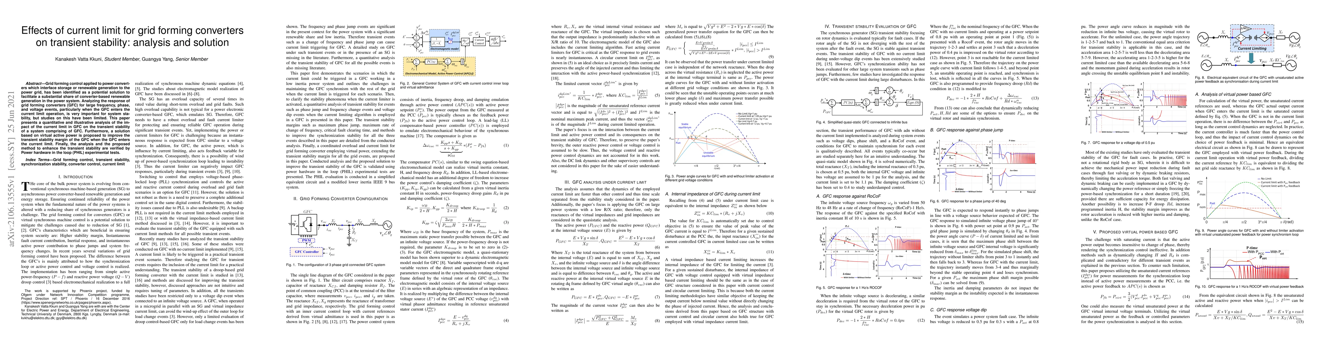 This paper analyzes the impact of current limit operation on the transient stability of grid forming converters interfacing renewable energy sources, and proposes a virtual active power solution to improve stability margins. The effectiveness of the proposed method is validated through Power hardware in the loop (PHIL) experimental tests.
