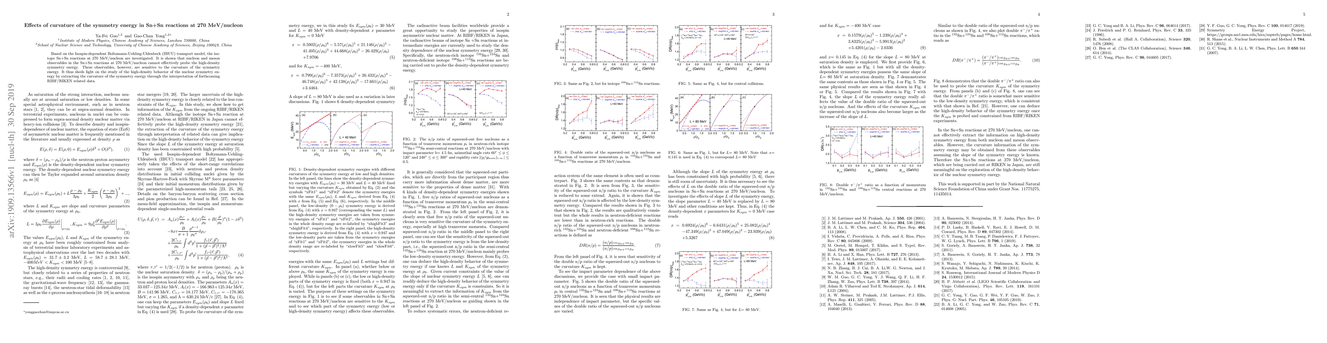 Based on the Isospin-dependent Boltzmann-Uehling-Uhlenbeck (IBUU) transport model, the isotope Sn+Sn reactions at 270 MeV/nucleon are investigated. It is shown that nucleon and meson observables in the Sn+Sn reactions at 270 MeV/nucleon cannot effectively probe the high-density symmetry energy. These observables, however, are sensitive to the curvature of the symmetry energy. It thus sheds light on the study of the high-density behavior of the nuclear symmetry energy by extracting the curvature of the symmetry energy through the interpretation of forthcoming RIBF/RIKEN related data.