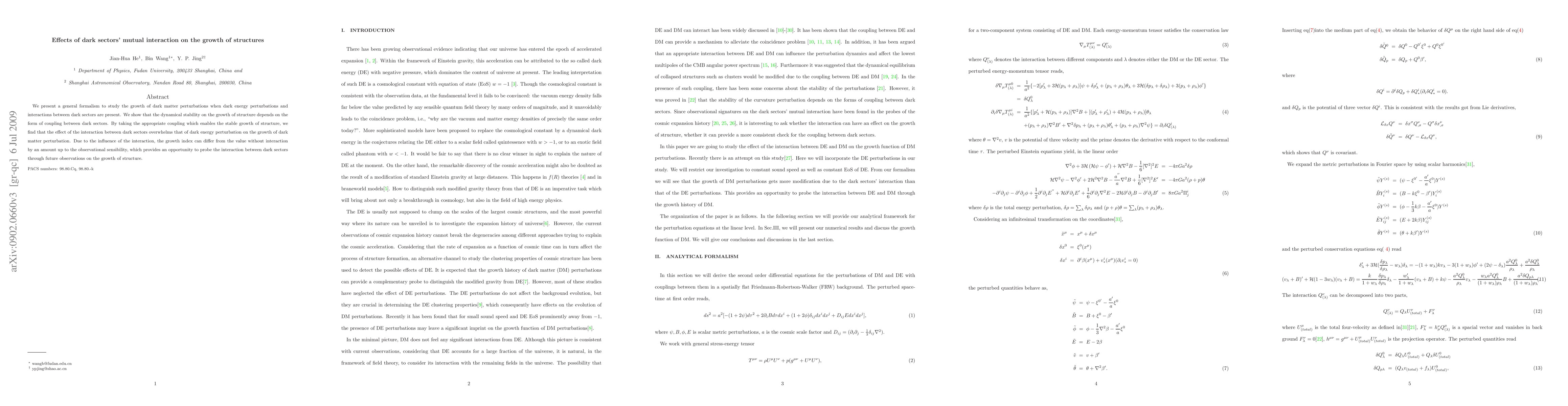 This paper develops a framework to analyze the growth of dark matter perturbations under the influence of dark energy and interactions between dark sectors. It finds that the stability and growth rate of structures depend on the nature of these interactions, potentially revealing their presence through future observational data on large-scale structure growth.