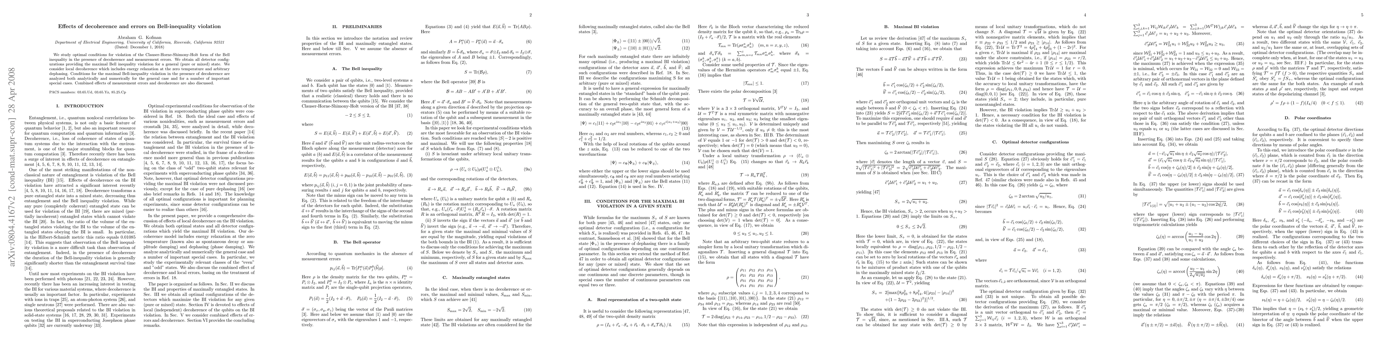 This paper investigates optimal conditions for maximizing the violation of the Clauser-Horne-Shimony-Holt Bell inequality under the influence of decoherence and measurement errors, analyzing both local decoherence and combined effects analytically and numerically for various quantum states.
