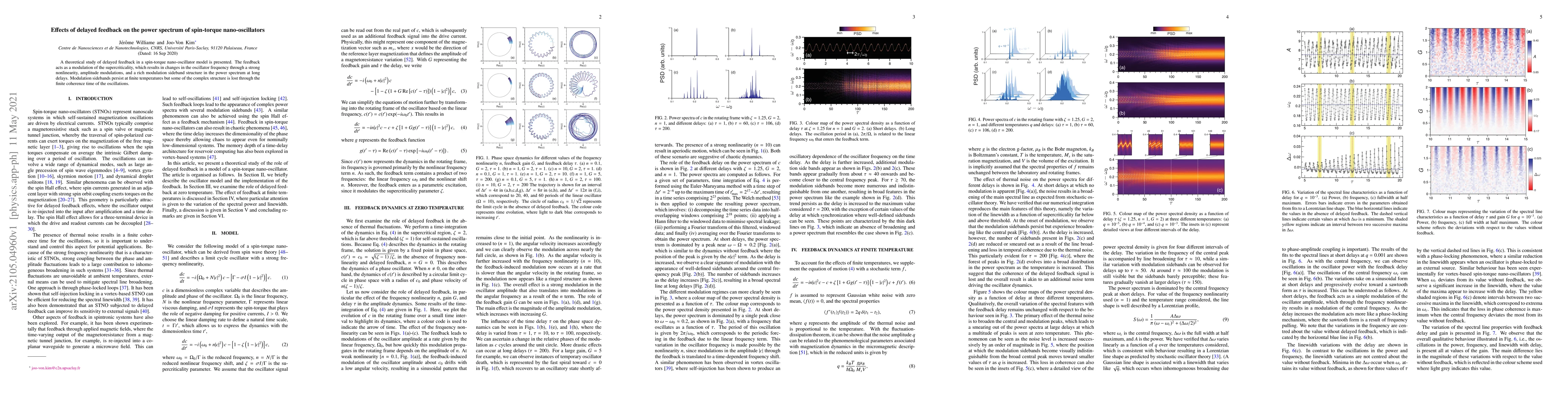 This study theoretically explores the impact of delayed feedback on spin-torque nano-oscillators, revealing modulation of supercriticality that alters frequency via nonlinearity and amplitude modulation, resulting in a rich sideband structure in the power spectrum, which persists at finite temperatures but diminishes due to finite coherence time.