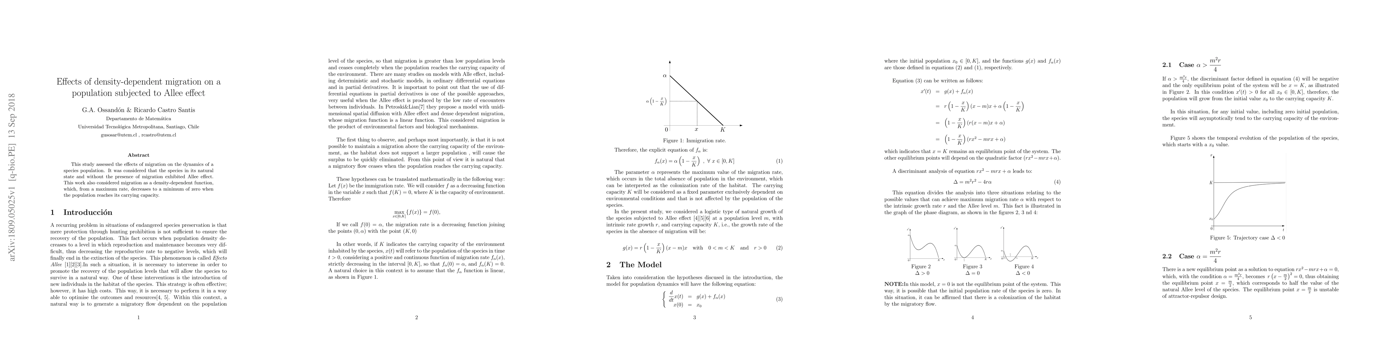 This study assessed the effects of migration on the dynamics of a species population. It was considered that the species in its natural state and without the presence of migration exhibited Allee effect. This work also considered migration as a density-dependent function, which, from a maximum rate, decreases to a minimum of zero when the population reaches its carrying capacity.