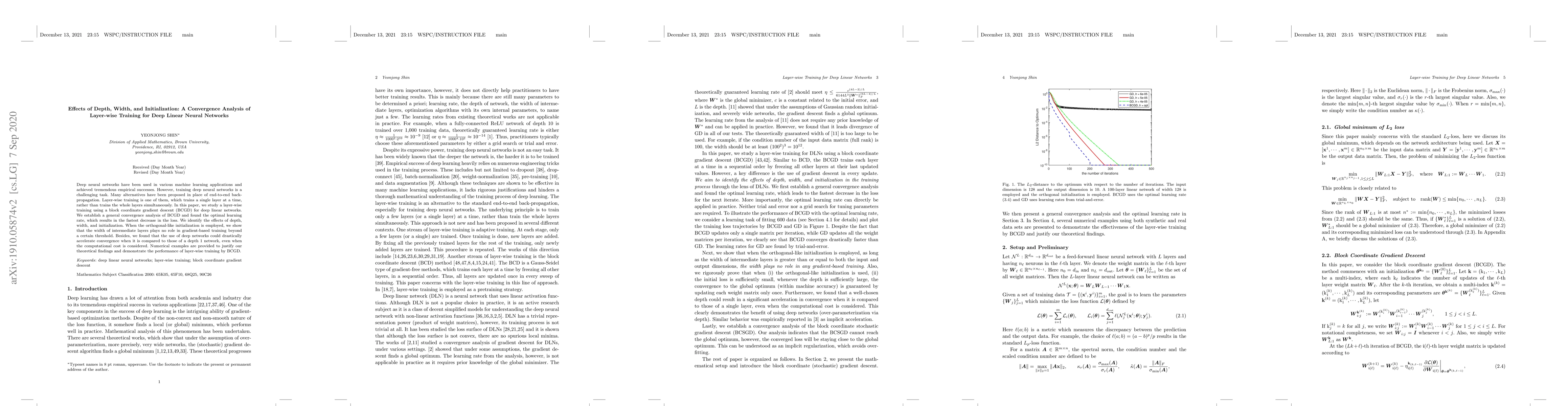 This paper investigates layer-wise training using block coordinate gradient descent for deep linear neural networks, establishing a convergence analysis. It identifies optimal learning rates that accelerate convergence without requiring prior knowledge, and explores the effects of network depth, width, and initialization, showing that deeper networks can significantly speed up training.