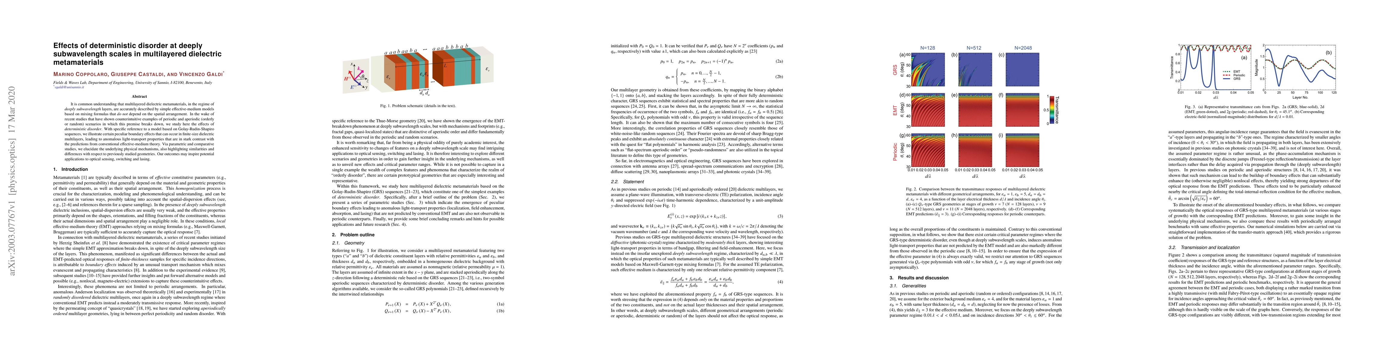 This paper investigates how deterministic disorder in multilayered dielectric metamaterials at deeply subwavelength scales can lead to anomalous light-transport properties, challenging conventional effective-medium theory. The study reveals peculiar boundary effects using Golay-Rudin-Shapiro sequences, suggesting potential applications in optical sensing, switching, and lasing.