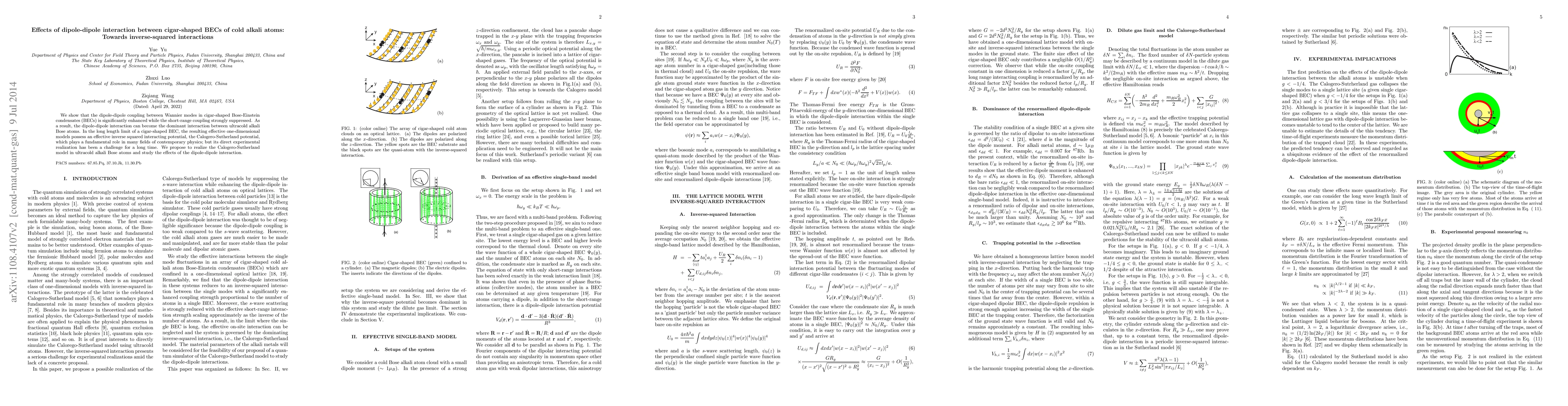 This paper demonstrates the significant enhancement of dipole-dipole coupling in cigar-shaped Bose-Einstein condensates (BECs) of cold alkali atoms, leading to an inverse-squared interaction potential. The study proposes a method to realize the Calogero-Sutherland model experimentally, which has been historically challenging.