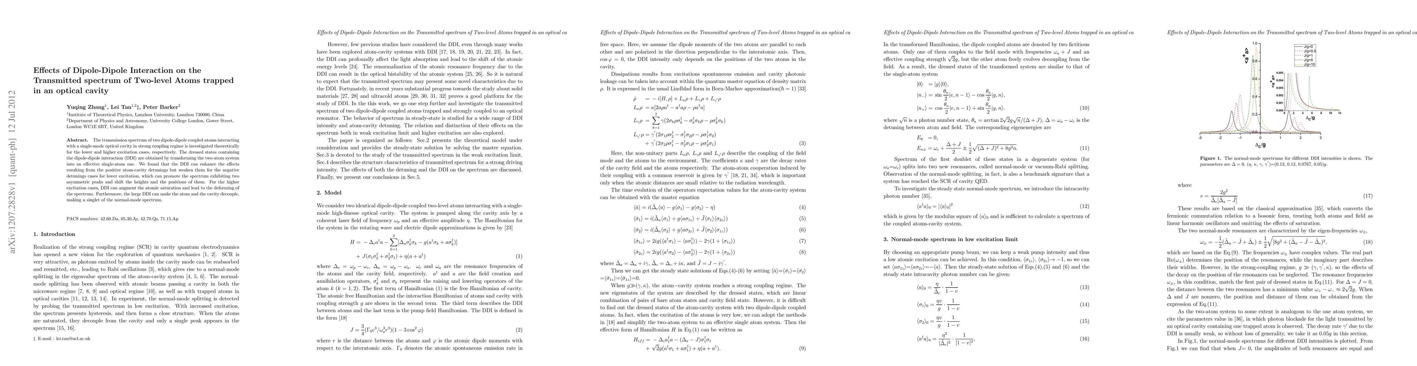 Theoretical model for the effects of dipole-dipole interactions on the transmission spectrum of two-level atoms, which has been verified experimentally