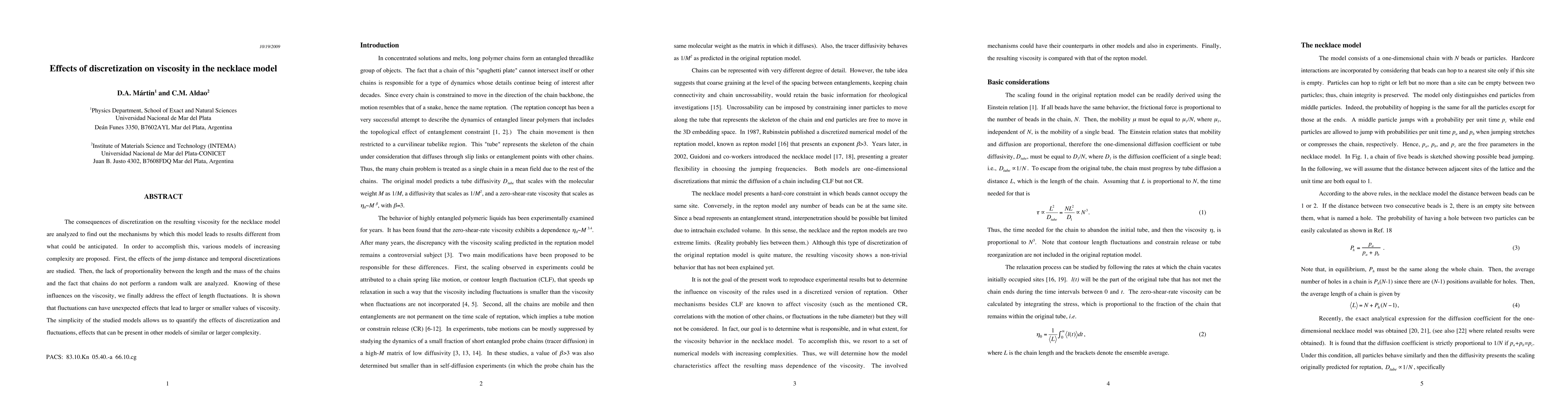 The consequences of discretization on the resulting viscosity for the necklace model are analyzed to find out the mechanisms by which this model leads to results different from what could be anticipated. In order to accomplish this, various models of increasing complexity are proposed. First, the effects of the jump distance and temporal discretizations are studied. Then, the lack of proportionality between the length and the mass of the chains and the fact that chains do not perform a random walk are analyzed. Knowing of these influences on the viscosity, we finally address the effect of length fluctuations. It is shown that fluctuations can have unexpected effects that lead to larger or smaller values of viscosity. The simplicity of the studied models allows us to quantify the effects of discretization and fluctuations, effects that can be present in other models of similar or larger complexity.