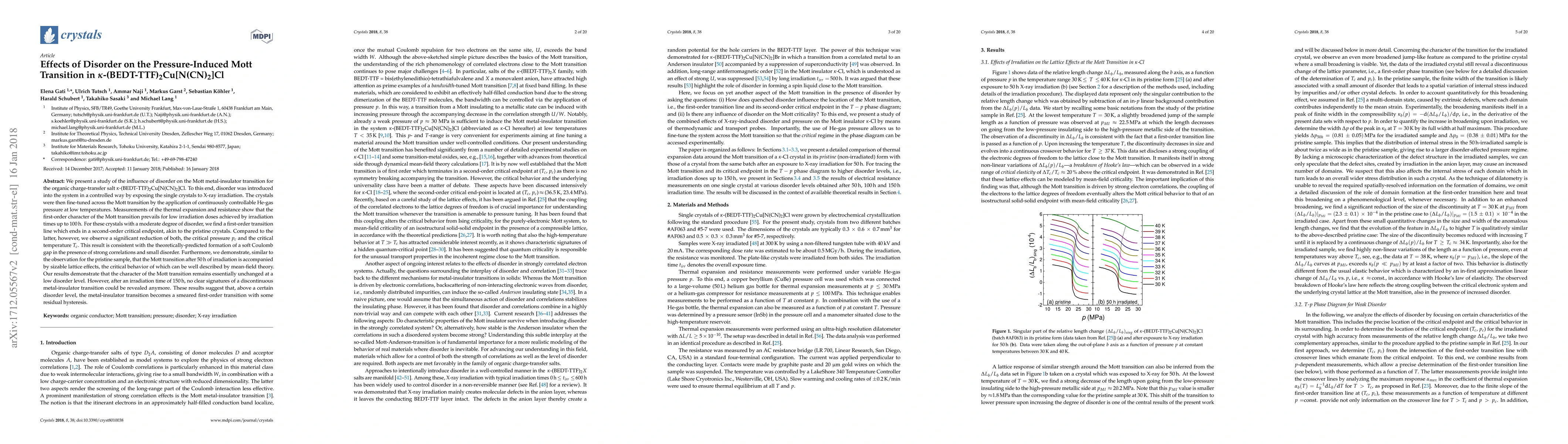 This study investigates how controlled disorder introduced via x-ray irradiation affects the pressure-induced Mott transition in $\kappa$-(BEDT-TTF)$_2$Cu[N(CN)$_2$]Cl. The results show that low disorder levels maintain a first-order transition with reduced critical pressure and temperature, while high disorder levels lead to a smeared transition and loss of clear transition signatures.
