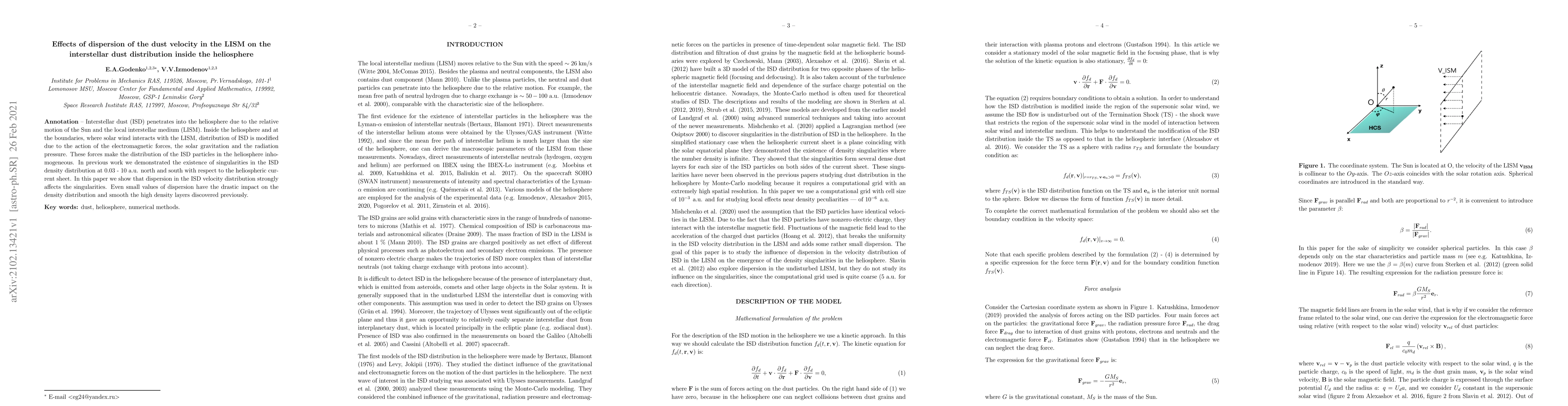 This paper investigates how dispersion in the velocity of interstellar dust (ISD) within the Local Interstellar Medium (LISM) influences the ISD distribution inside the heliosphere. It finds that even minor velocity dispersion significantly alters ISD density distribution, smoothing previously identified high-density layers and affecting the singularities in the ISD density near the heliospheric current sheet.