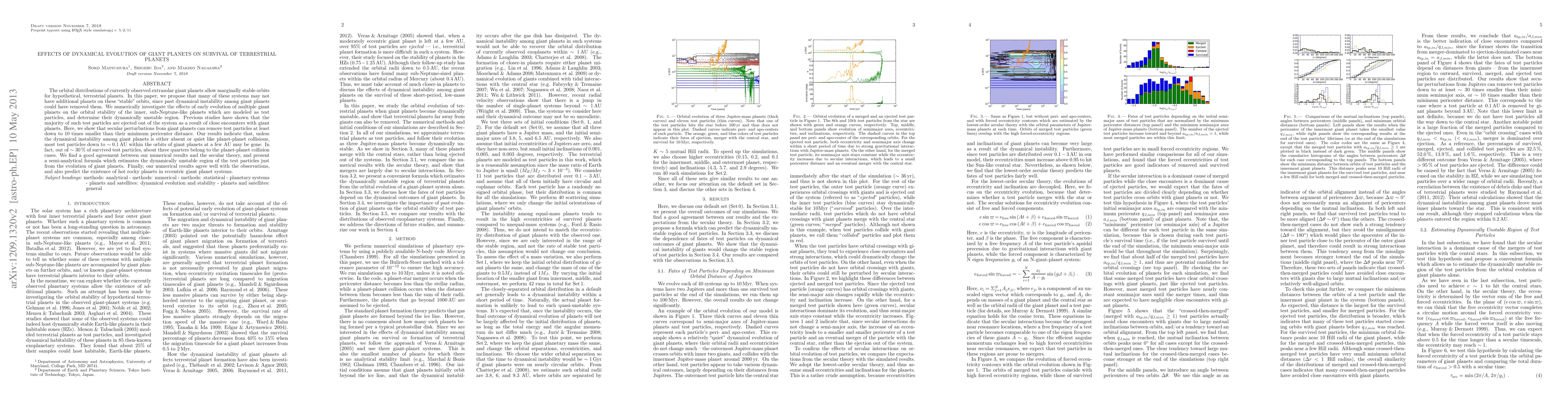 This paper investigates how the dynamical evolution of giant planets affects the survival of terrestrial planets, finding that past instabilities often remove inner sub-Neptune-like planets. It concludes that most test particles within ~0.1 AU of giant planets are ejected, with only ~30% surviving, mostly due to planet-planet collisions.