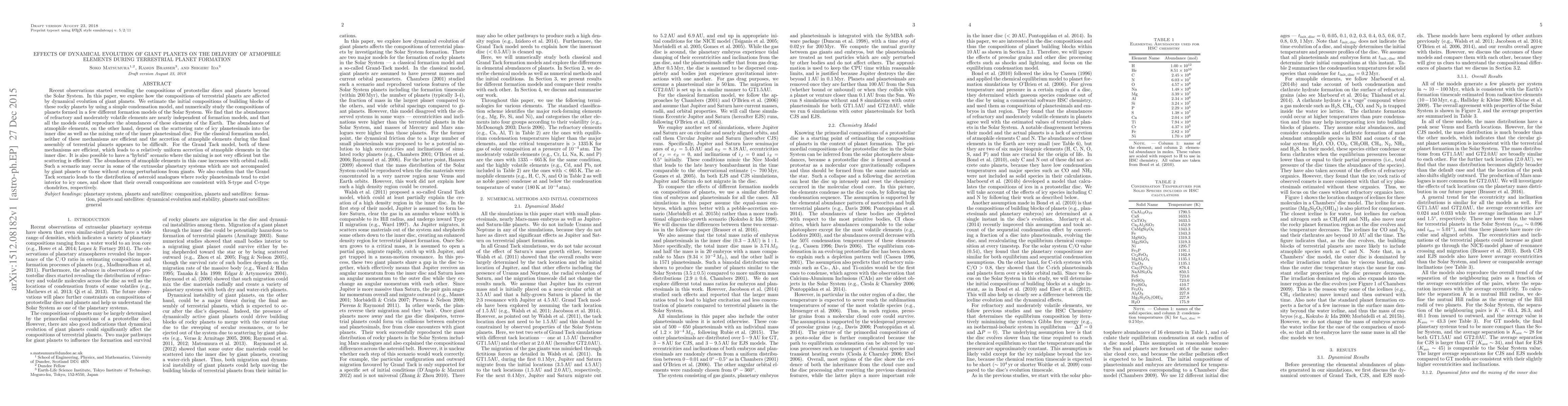 This paper investigates how the dynamical evolution of giant planets influences the delivery of atmophile elements during terrestrial planet formation. It finds that the abundances of refractory and moderately volatile elements are model-independent, while atmophile elements depend on the scattering and mixing rates of planetesimals, with the Grand Tack model showing efficient accretion.