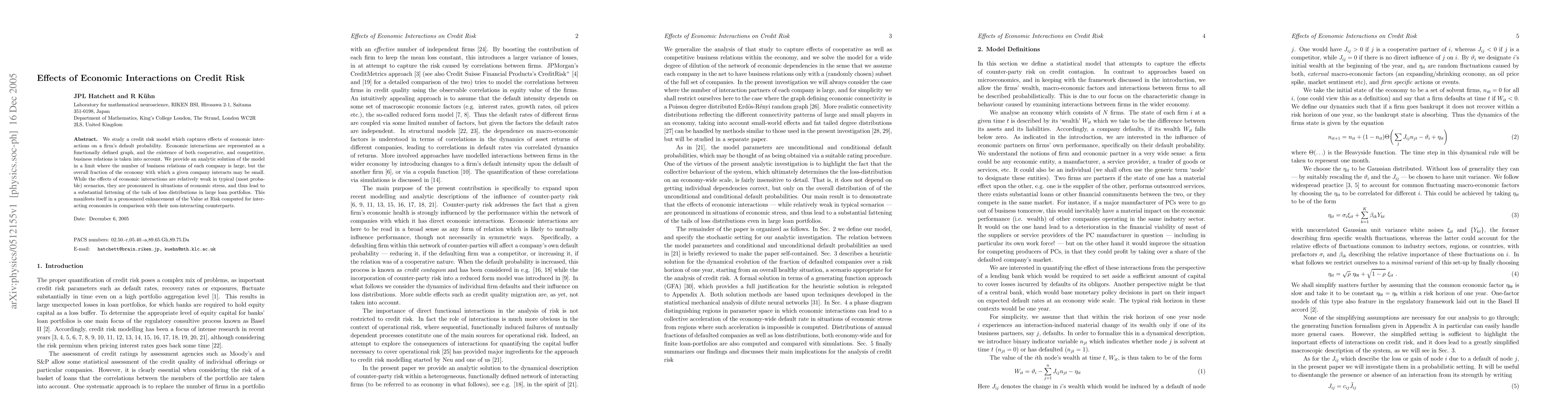 Economic interactions between companies can significantly increase credit risk, especially during economic stress, leading to a widening of loss distributions in large loan portfolios.