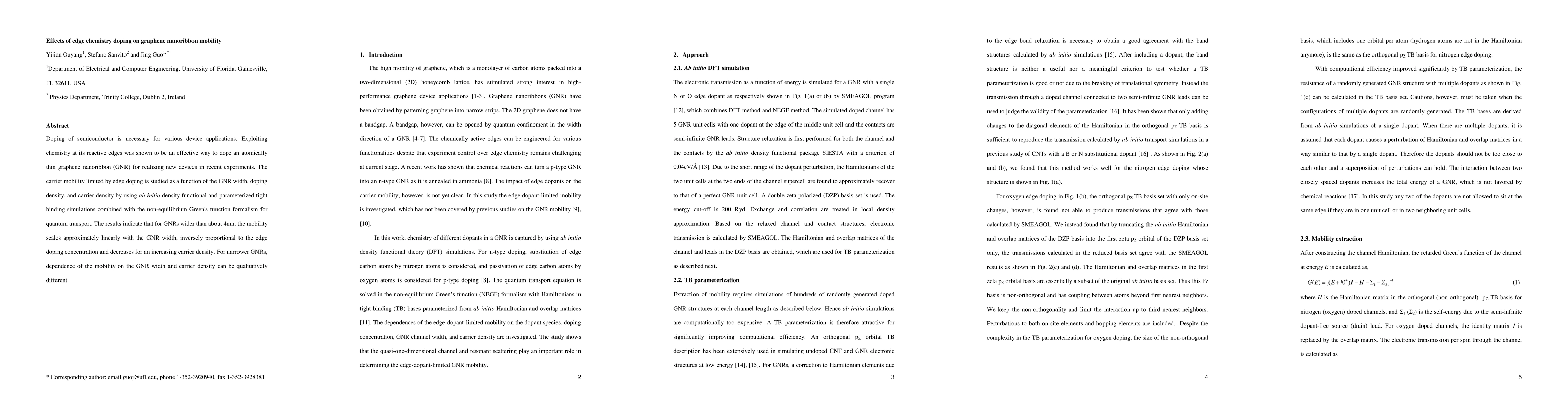 Doping of semiconductor is necessary for various device applications. Exploiting chemistry at its reactive edges was shown to be an effective way to dope an atomically thin graphene nanoribbon (GNR) for realizing new devices in recent experiments. The carrier mobility limited by edge doping is studied as a function of the GNR width, doping density, and carrier density by using ab initio density functional and parameterized tight binding simulations combined with the non-equilibrium Green's function formalism for quantum transport. The results indicate that for GNRs wider than about 4nm, the mobility scales approximately linearly with the GNR width, inversely proportional to the edge doping concentration and decreases for an increasing carrier density. For narrower GNRs, dependence of the mobility on the GNR width and carrier density can be qualitatively different.