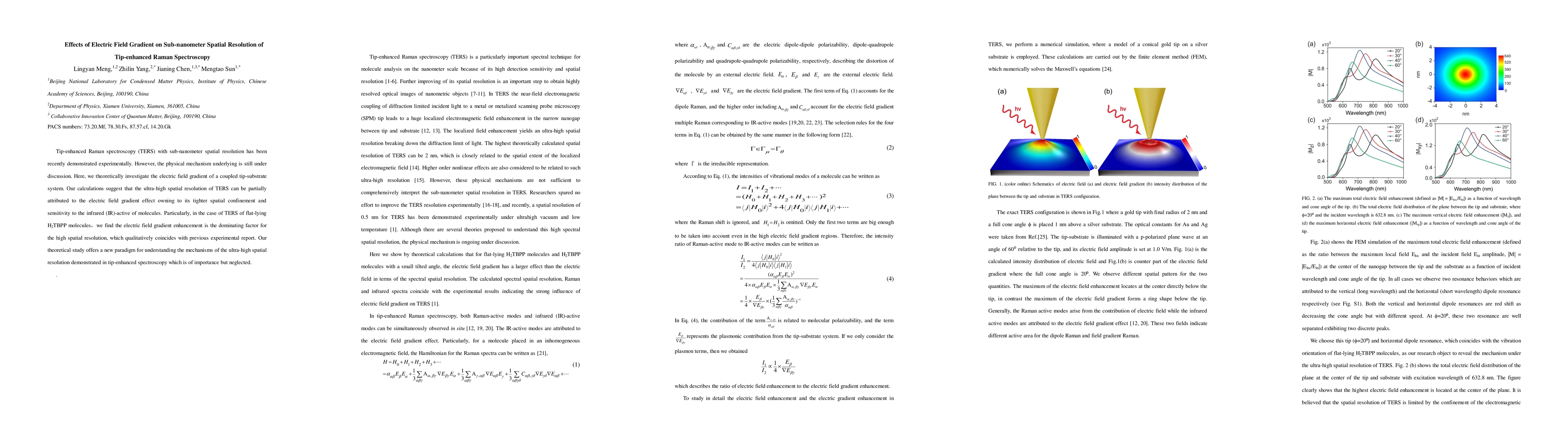 This paper theoretically explores how the electric field gradient in a coupled tip-substrate system contributes to the sub-nanometer spatial resolution of tip-enhanced Raman spectroscopy (TERS). The study finds that the electric field gradient's tight spatial confinement and sensitivity to IR-active molecules partially explain TERS's ultra-high resolution.