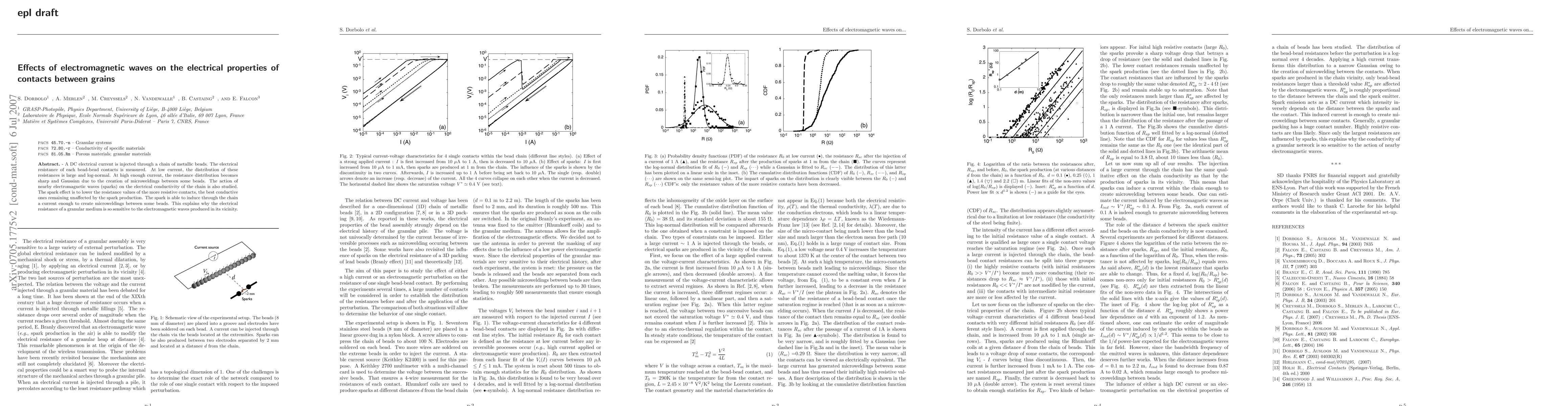 This study investigates how electromagnetic waves influence the electrical resistance of metallic bead chains. At low current, resistance distributions are log-normal, but high current induces microweldings, resulting in Gaussian distribution. Electromagnetic sparks lower resistance in resistive contacts, creating microweldings and explaining the sensitivity of granular medium resistance to nearby electromagnetic waves.