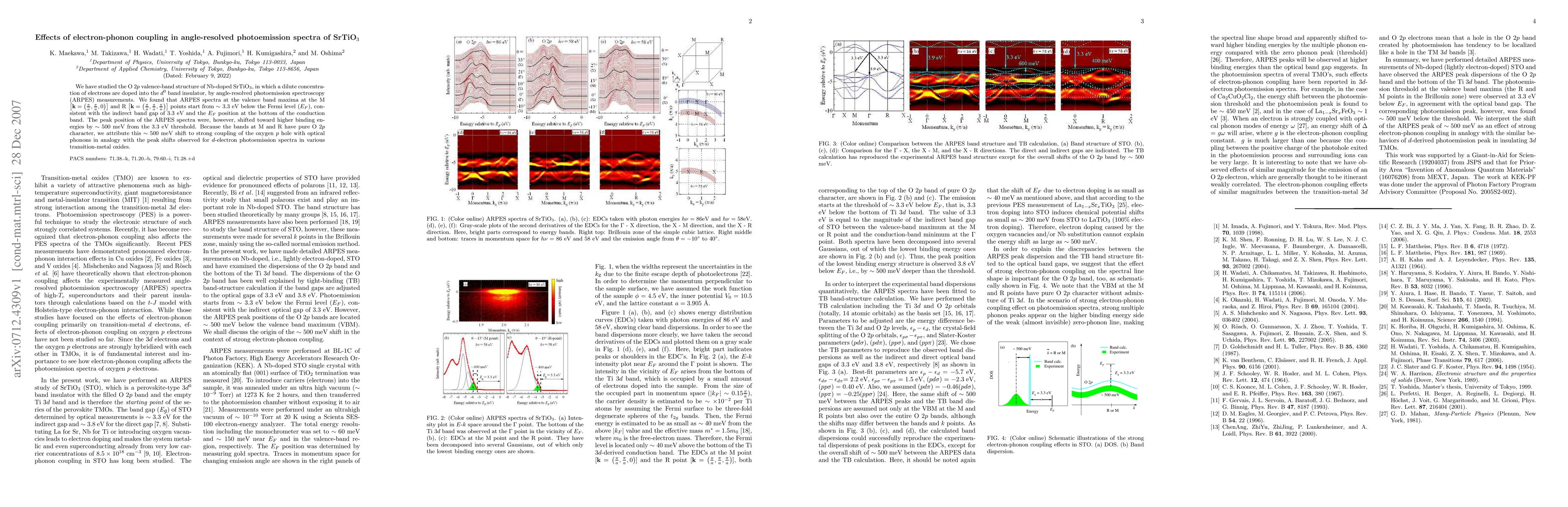 Researchers used angle-resolved photoemission spectroscopy to study Nb-doped SrTiO3 and found strong coupling of oxygen p holes with optical phonons, shifting the valence band maxima by ~500 meV from the expected energy threshold.