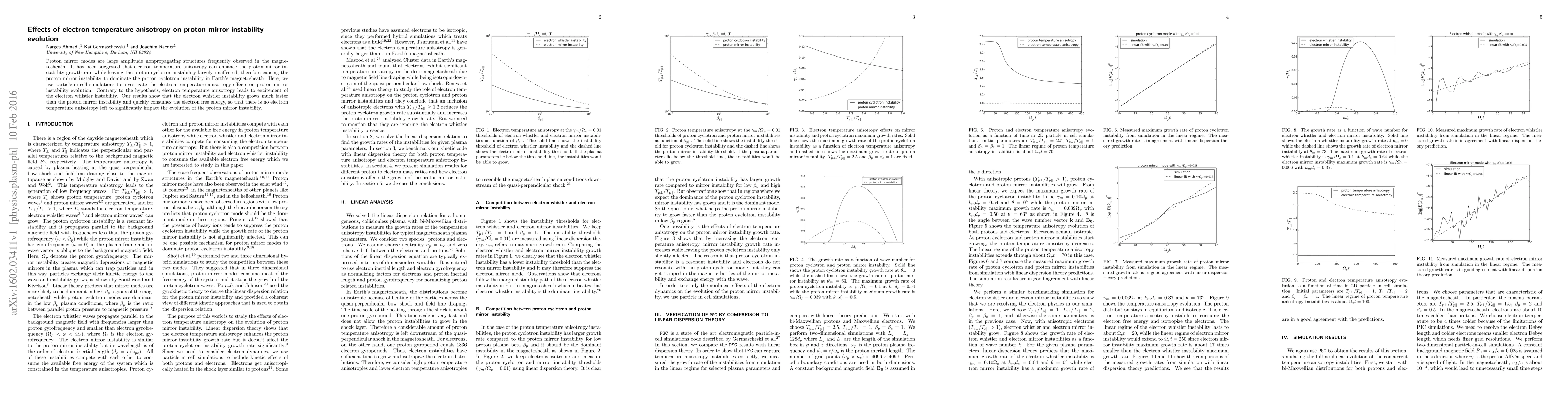 Proton mirror modes are large amplitude nonpropagating structures frequently observed in the magnetosheath. It has been suggested that electron temperature anisotropy can enhance the proton mirror instability growth rate while leaving the proton cyclotron instability largely unaffected, therefore causing the proton mirror instability to dominate the proton cyclotron instability in Earth's magnetosheath. Here, we use particle-in-cell simulations to investigate the electron temperature anisotropy effects on proton mirror instability evolution. Contrary to the hypothesis, electron temperature anisotropy leads to excitement of the electron whistler instability. Our results show that the electron whistler instability grows much faster than the proton mirror instability and quickly consumes the electron free energy, so that there is no electron temperature anisotropy left to significantly impact the evolution of the proton mirror instability.