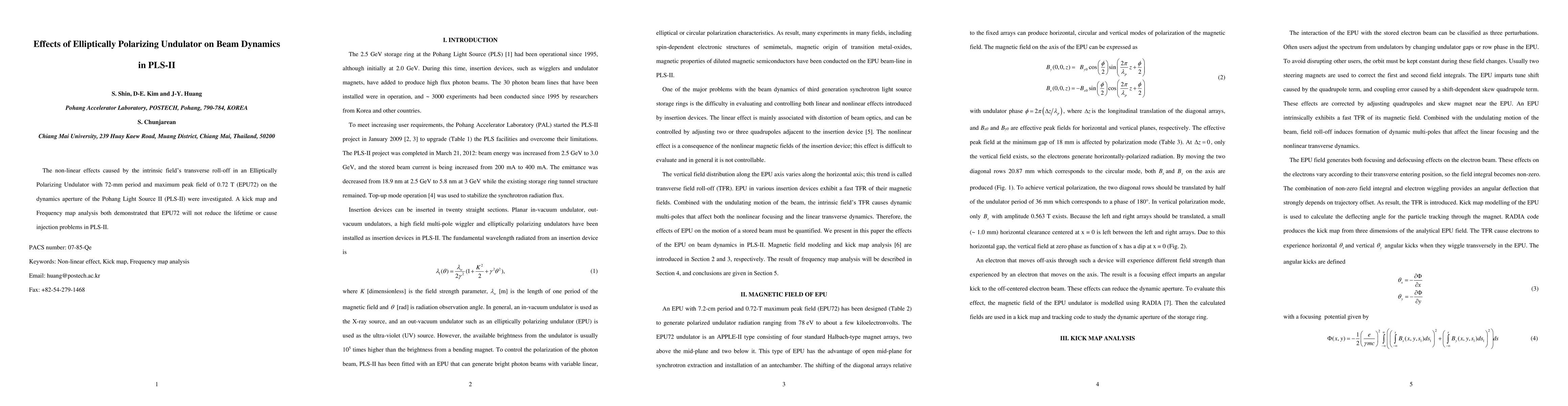 The non-linear effects caused by the intrinsic field transverse roll-off in an Elliptically Polarizing Undulator with 72-mm period and maximum peak field of 0.72 T (EPU72) on the dynamics aperture of the Pohang Light Source II (PLS-II) were investigated. A kick map and Frequency map analysis both demonstrated that EPU72 will not reduce the lifetime or cause injection problems in PLS-II.