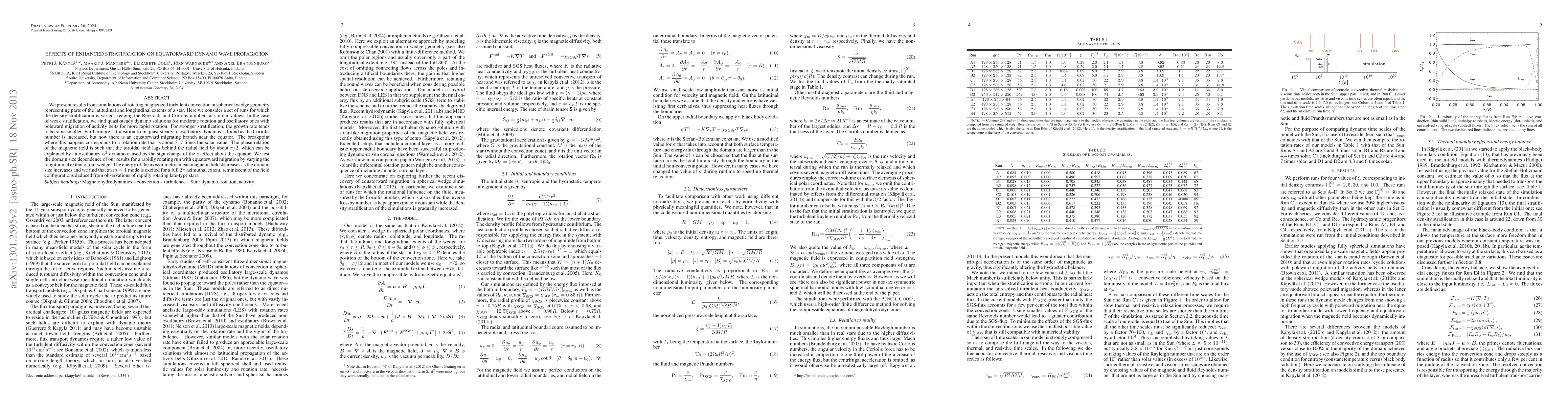 This study simulates rotating magnetized turbulent convection in a spherical wedge to explore the effects of enhanced stratification on equatorward dynamo wave propagation. It shows that stronger stratification leads to a transition from quasi-steady to oscillatory dynamos with an equatorward migrating branch, and the toroidal field lags the radial field, suggesting an oscillatory $\alpha^2$ dynamo mechanism.
