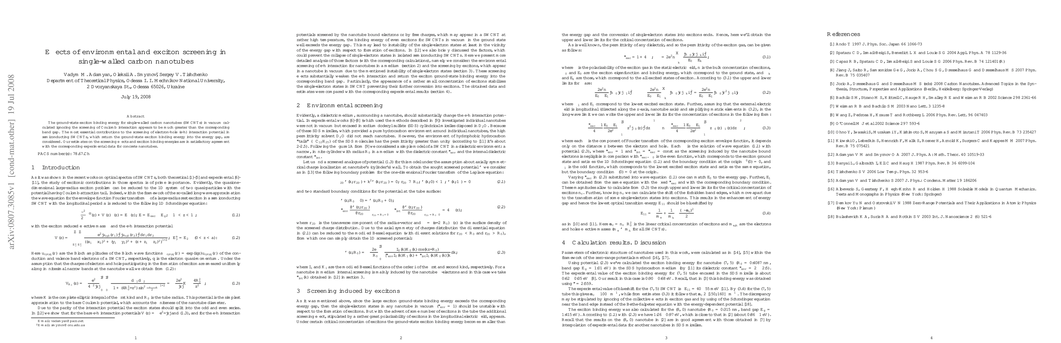 Summary: This paper investigates the exciton binding energy in single-walled carbon nanotubes (SWCNTs), demonstrating that environmental and exciton screening significantly reduce the calculated exciton binding energy, aligning it with the band gap and experimental data. The study highlights the essential role of screening in determining exciton properties in semiconducting SWCNTs.