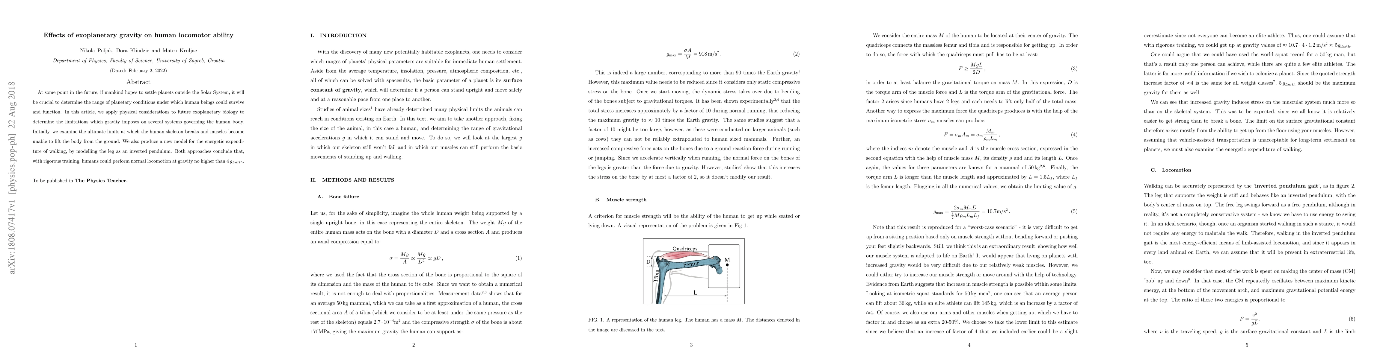 Research suggests humans could survive and function on planets with gravity no higher than 4g_Earth, requiring rigorous training for normal locomotion. This finding has implications for future exoplanetary settlement and the physical conditions required for human survival.