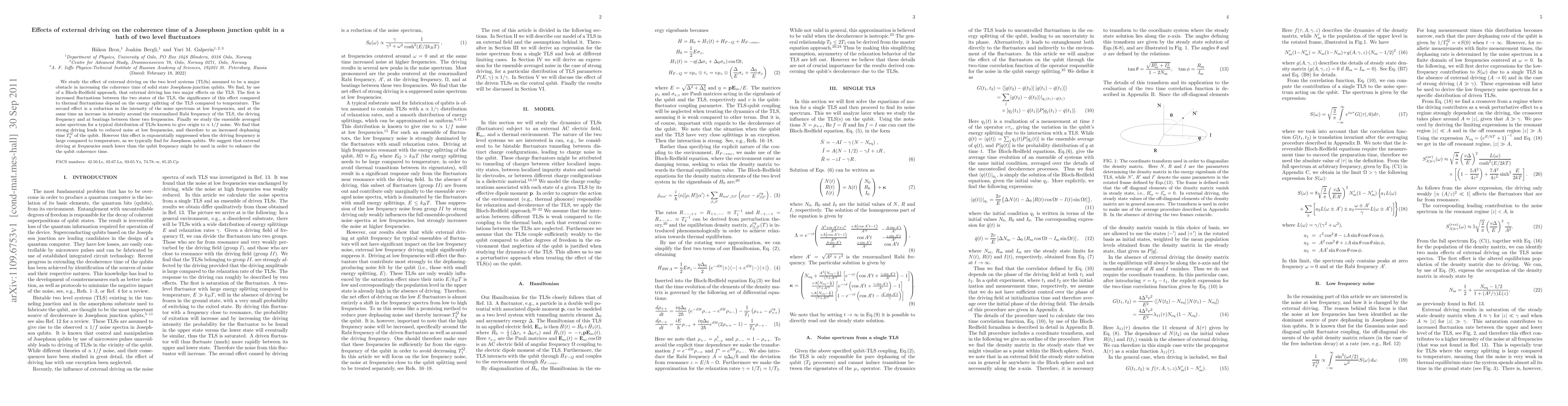 We study the effect of external driving on the two level systems (TLSs) assumed to be a major obstacle in increasing the coherence time of solid state Josephson-junction qubits. We find, by use of a Bloch-Redfield approach, that external driving has two major effects on the TLS. The first is increased fluctuations between the two states of the TLS, the significance of this effect compared to thermal fluctuations depend on the energy splitting of the TLS compared to temperature. The second effect is a reduction in the intensity of the noise spectrum at low frequencies, and at the same time an increase in intensity around the renormalized Rabi frequency of the TLS, the driving frequency and at beatings between these two frequencies. Finally we study the ensemble averaged noise spectrum for a typical distribution of TLSs known to give origin to $\propto 1/f$ noise. We find that strong driving leads to reduced noise at low frequencies, and therefore to an increased dephasing time $T_2^Q$ of the qubit. However this effect is exponentially suppressed when the driving frequency is large compared to temperature, as we typically find for Josephson qubits. We suggest that external driving at frequencies much lower than the qubit frequency might be used in order to enhance the the qubit coherence time.
