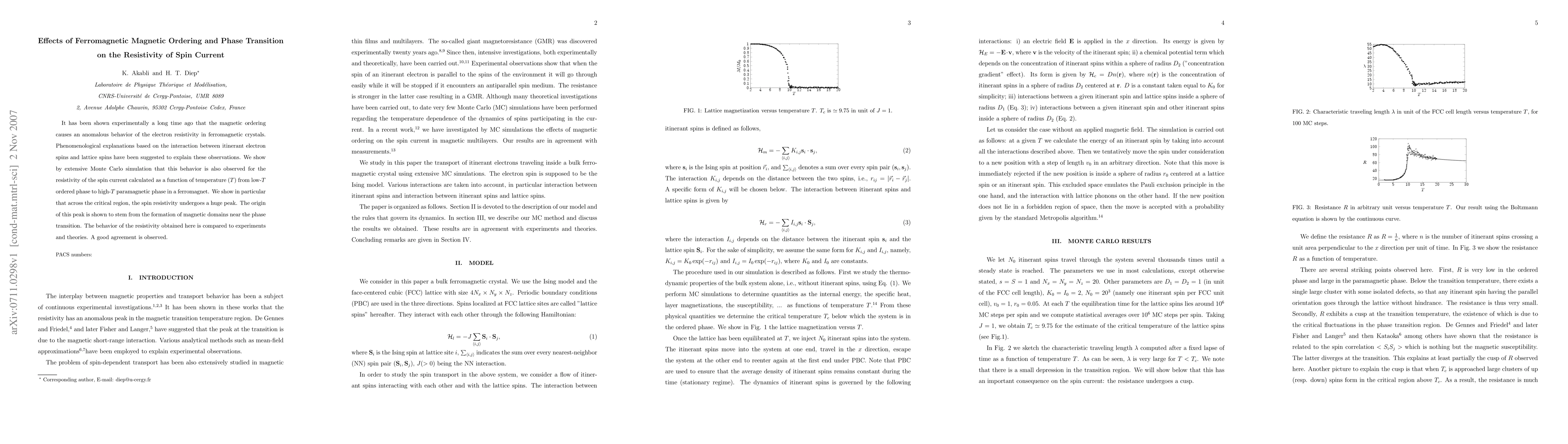 It has been shown experimentally a long time ago that the magnetic ordering causes an anomalous behavior of the electron resistivity in ferromagnetic crystals. Phenomenological explanations based on the interaction between itinerant electron spins and lattice spins have been suggested to explain these observations. We show by extensive Monte Carlo simulation that this behavior is also observed for the resistivity of the spin current calculated as a function of temperature ($T$) from low-$T$ ordered phase to high-$T$ paramagnetic phase in a ferromagnet. We show in particular that across the critical region, the spin resistivity undergoes a huge peak. The origin of this peak is shown to stem from the formation of magnetic domains near the phase transition. The behavior of the resistivity obtained here is compared to experiments and theories. A good agreement is observed.