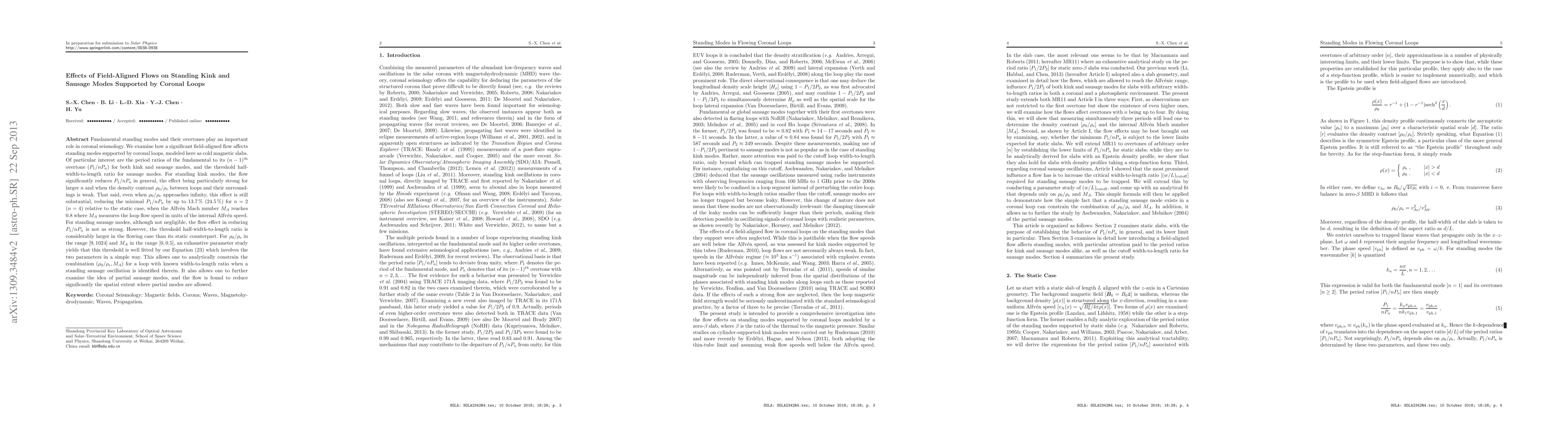Fundamental standing modes and their overtones play an important role in coronal seismology. We examine how a significant field-aligned flow affects standing modes supported by coronal loops, modeled here as cold magnetic slabs. Of particular interest are the period ratios of the fundamental to its $(n-1)$-th overtone ($P_1/nP_n$) for both kink and sausage modes, and the threshold half-width-to-length ratio for sausage modes. For standing kink modes, the flow significantly reduces $P_1/nP_n$ in general, the effect being particularly strong for larger $n$ and when the density contrast $\rho_0/\rho_e$ between loops and their surroundings is weak. That said, even when $\rho_0/\rho_e$ approaches infinity, this effect is still substantial, reducing the minimal $P_1/nP_n$ by up to 13.7% (24.5%) for $n=2$ ($n=4$) relative to the static case, when the Alfv\'en Mach number $M_A$ reaches 0.8 where $M_A$ measures the loop flow speed in units of the internal Alfv\'en speed. For standing sausage modes, though not negligible, the flow effect in reducing $P_1/nP_n$ is not as strong. However, the threshold half-width-to-length ratio is considerably larger in the flowing case than its static counterpart. For $\rho_0/\rho_e$ in the range $[9, 1024]$ and $M_A$ in the range $[0, 0.5]$, an exhaustive parameter study yields that this threshold is well fitted by our Equation (23) which involves the two parameters in a simple way. This allows one to analytically constrain the combination $(\rho_0/\rho_e, M_A)$ for a loop with known width-to-length ratio when a standing sausage oscillation is identified therein. It also allows one to further examine the idea of partial sausage modes, and the flow is found to reduce significantly the spatial extent where partial modes are allowed.