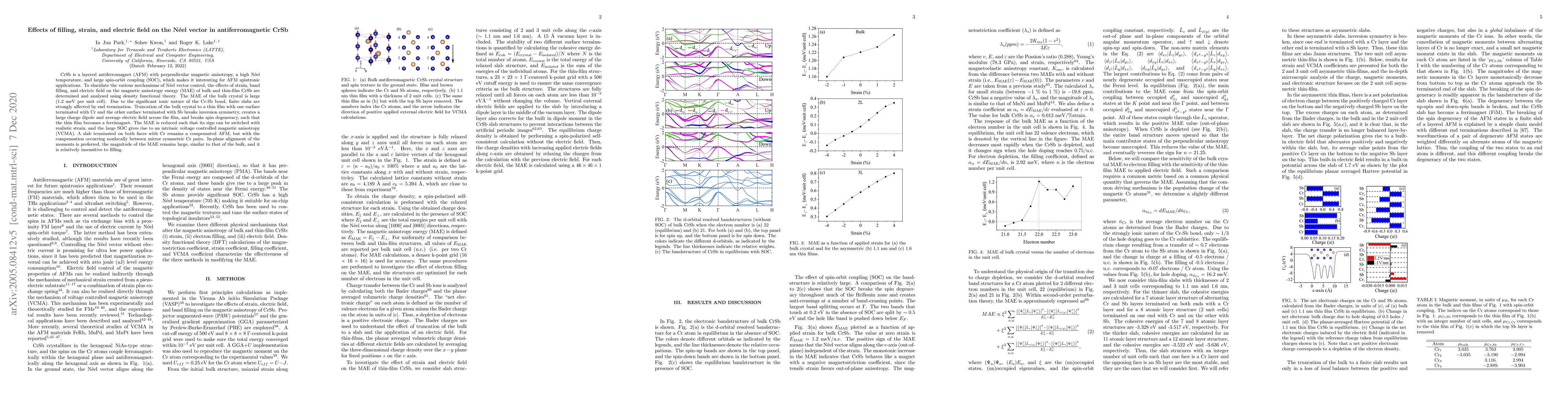 CrSb is a layered antiferromagnet (AFM) with perpendicular magnetic anisotropy, a high N\'{e}el temperature, and large spin-orbit coupling (SOC), which makes it interesting for AFM spintronic applications. To elucidate the various mechanisms of N\'{e}el vector control, the effects of strain, band filling, and electric field on the magnetic anisotropy energy (MAE) of bulk and thin-film CrSb are determined and analysed using density functional theory. The MAE of the bulk crystal is large (1.2 meV per unit cell). Due to the significant ionic nature of the Cr-Sb bond, finite slabs are strongly affected by end termination. Truncation of the bulk crystal to a thin film with one surface terminated with Cr and the other surface terminated with Sb breaks inversion symmetry, creates a large charge dipole and average electric field across the film, and breaks spin degeneracy, such that the thin film becomes a ferrimagnet. The MAE is reduced such that its sign can be switched with realistic strain, and the large SOC gives rise to an intrinsic voltage controlled magnetic anisotropy (VCMA). A slab terminated on both faces with Cr remains a compensated AFM, but with the compensation occurring nonlocally between mirror symmetric Cr pairs. In-plane alignment of the moments is preferred, the magnitude of the MAE remains large, similar to that of the bulk, and it is relatively insensitive to filling.
