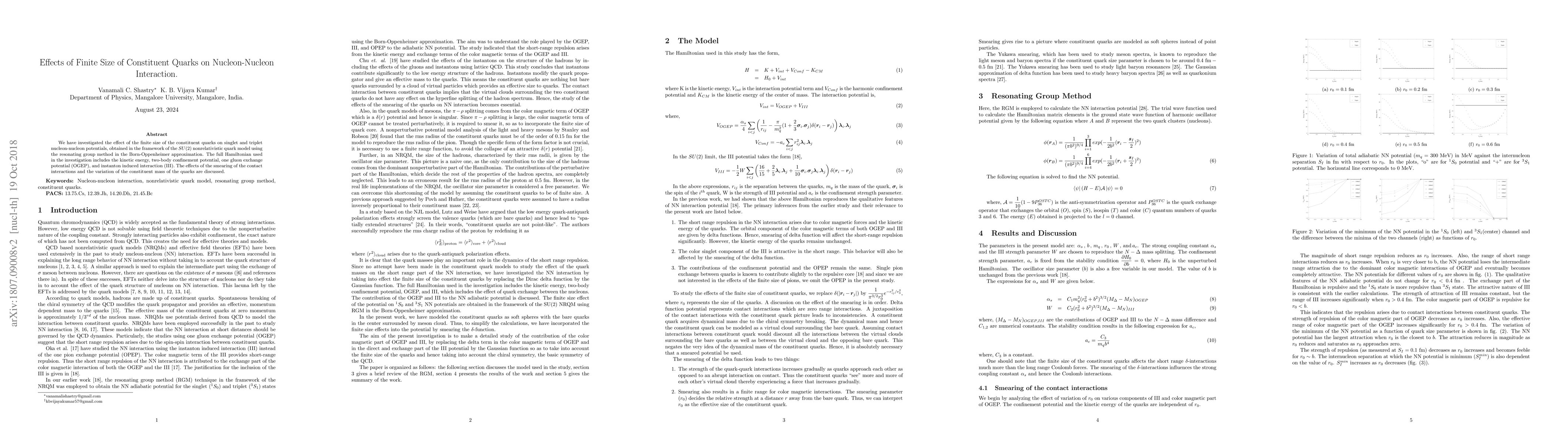 This paper examines how the finite size of constituent quarks influences nucleon-nucleon interactions within the $SU(2)$ nonrelativistic quark model, using the resonating group method. It analyzes singlet and triplet nucleon-nucleon potentials, considering smearing effects and variations in quark mass.