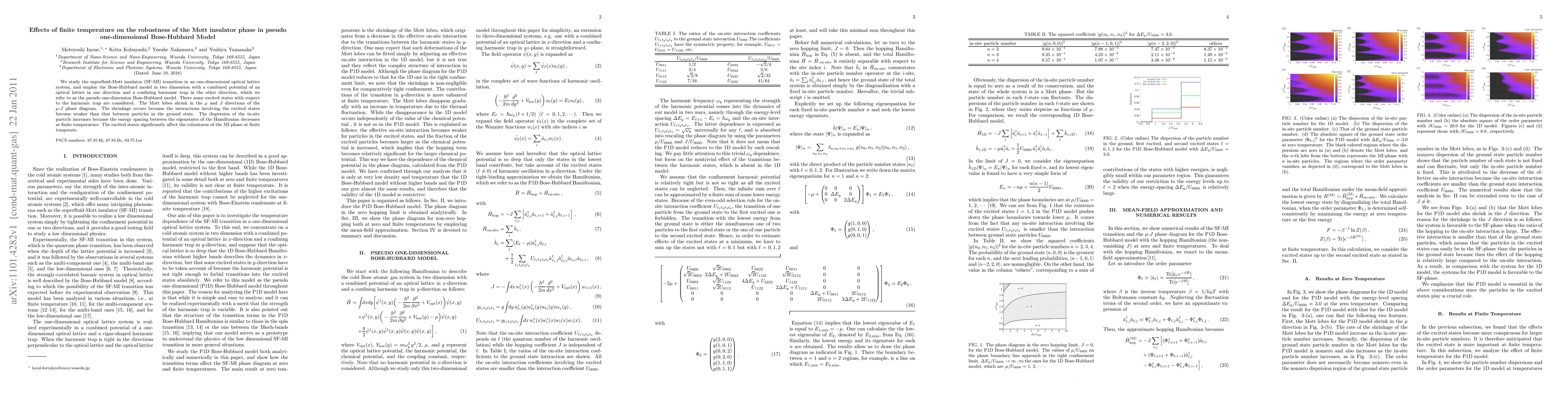 This research investigates the superfluid-Mott insulator transition in a pseudo one-dimensional Bose-Hubbard model, revealing that the Mott lobes shrink due to weaker interactions involving excited states compared to ground state particles. At finite temperatures, the robustness of the Mott insulator phase is significantly affected by the dispersion of in-site particles as the energy spacing between eigenstates decreases.