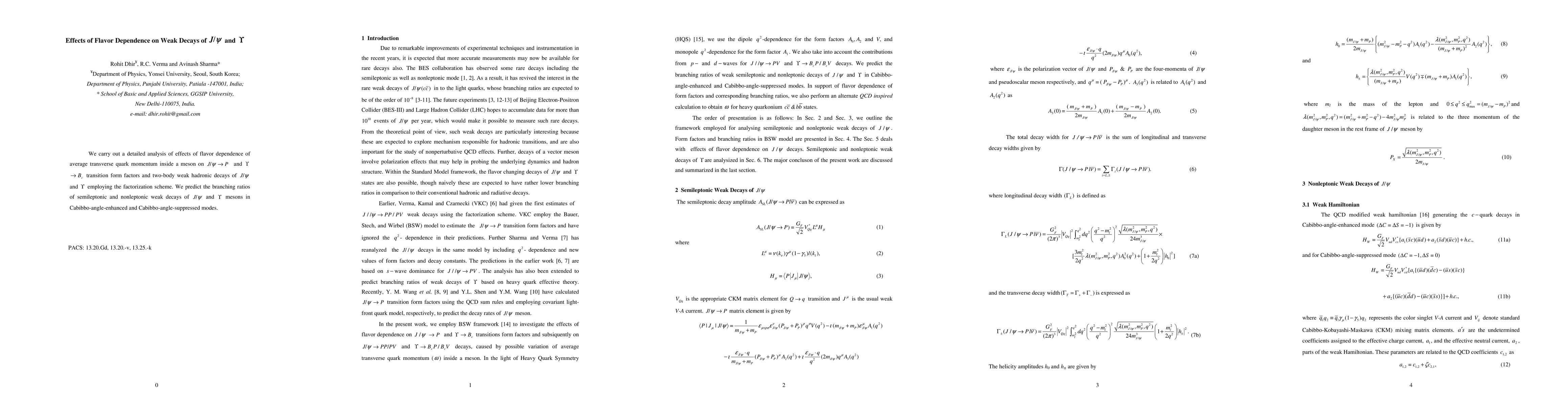 We give the detailed analysis of effects of flavor dependence of average transverse quark momentum inside a meson on J/psi --> P and \Upsilon --> Bc transition form factors and two-body weak hadronic decays of J/psi and \Upsilon employing the factorization scheme. We predict the branching ratios of semileptonic and nonleptonic weak decays of J/psi and \Upsilon mesons in Cabibbo-angle-enhanced and Cabibbo-angle-suppressed modes.