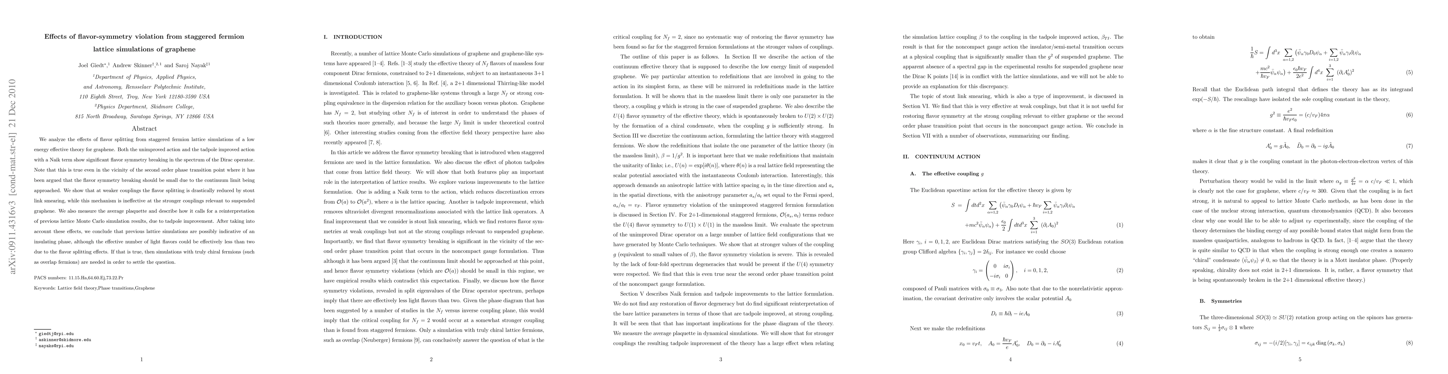 We analyze the effects of flavor splitting from staggered fermion lattice simulations of graphene. Both the unimproved action, and the tadpole improved action with a Naik term show significant flavor symmetry breaking in the spectrum of the Dirac operator. We also measure the average plaquette term and describe how it calls for a reinterpretation of previous lattice Monte Carlo simulation results, due to tadpole improvement. From this we infer that the simulations are indicative of a semi-metal phase for suspended graphene.
