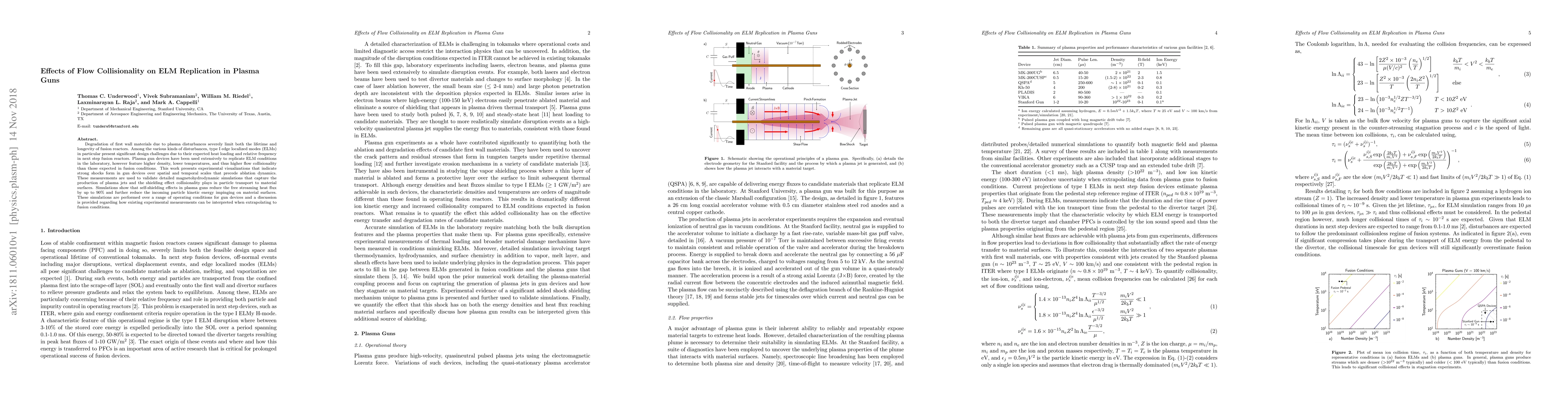 Degradation of first wall materials due to plasma disturbances severely limit both the lifetime and longevity of fusion reactors. Among the various kinds of disturbances, type I edge localized modes (ELMs) in particular present significant design challenges due to their expected heat loading and relative frequency in next step fusion reactors. Plasma gun devices have been used extensively to replicate ELM conditions in the laboratory, however feature higher density, lower temperatures, and thus higher flow collisionality than those expected in fusion conditions. This work presents experimental visualizations that indicate strong shocks form in gun devices over spatial and temporal scales that precede ablation dynamics. These measurements are used to validate detailed magnetohydrodynamic simulations that capture the production of plasma jets and the shielding effect collisionality plays in particle transport to material surfaces. Simulations show that self-shielding effects in plasma guns reduce the free streaming heat flux by up to 90% and further reduce the incoming particle kinetic energy impinging on material surfaces. These simulations are performed over a range of operating conditions for gun devices and a discussion is provided regarding how existing experimental measurements can be interpreted when extrapolating to fusion conditions.