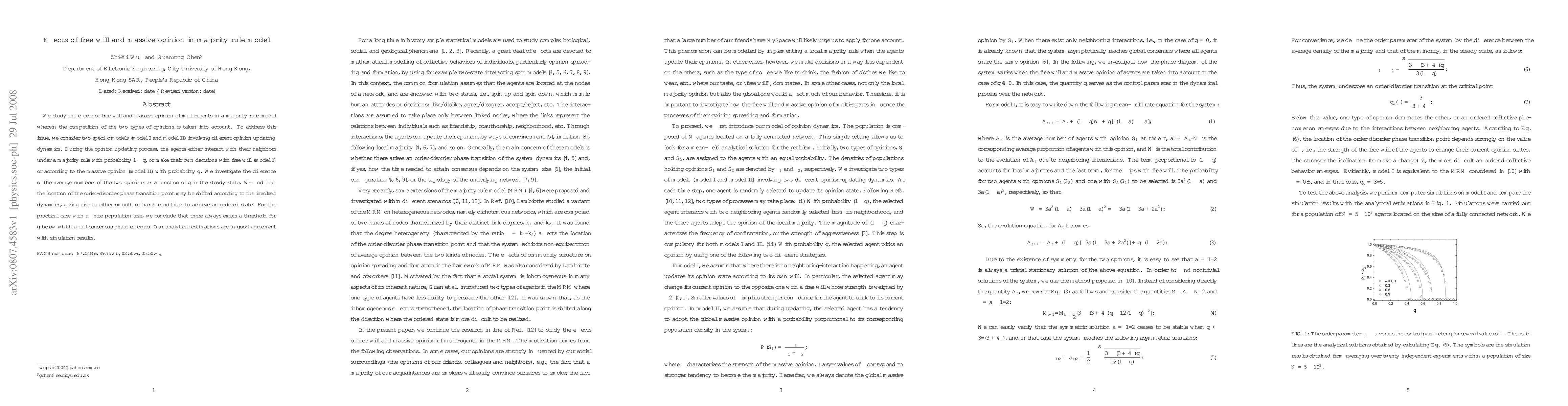 This paper examines how free will and massive opinion influence the dynamics of a majority rule model, revealing that the probability of agents making independent decisions can shift the order-disorder phase transition, leading to either smooth or abrupt consensus formation. Analytical results match simulation findings, showing a threshold for consensus in finite populations.