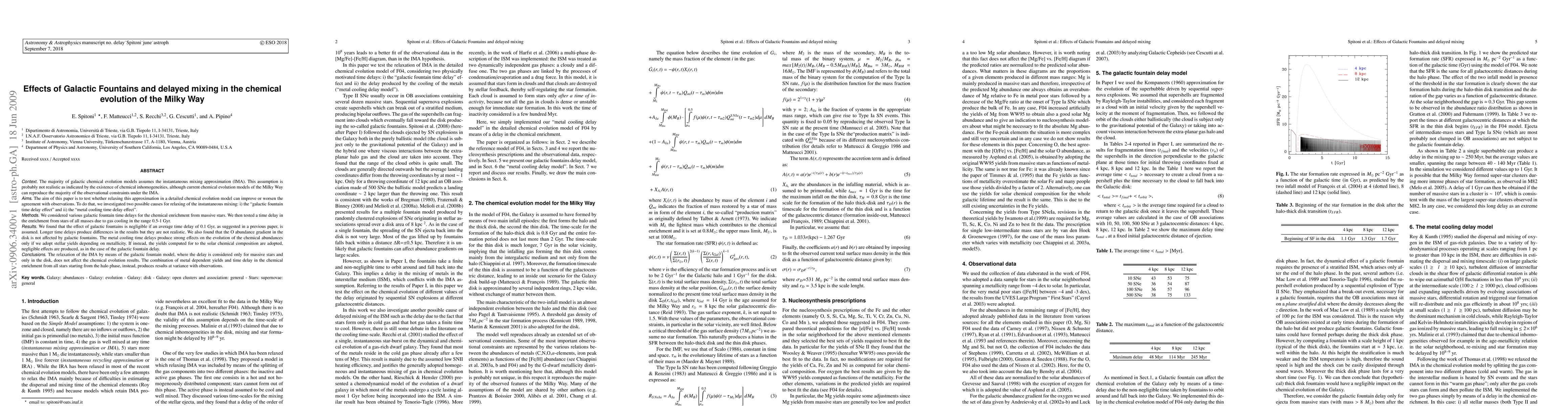 The majority of galactic chemical evolution models assumes the instantaneous mixing approximation (IMA). This assumption is probably not realistic as indicated by the existence of chemical inhomogeneities, although current chemical evolution models of the Milky Way can reproduce the majority of the observational constraints under the IMA. The aim of this paper is to test whether relaxing this approximation in a detailed chemical evolution model can improve or worsen the agreement with observations. To do that, we investigated two possible causes for relaxing of the instantaneous mixing: i) the ``galactic fountain time delay effect'' and ii) the ``metal cooling time delay effect''. We found that the effect of galactic fountains is negligible if an average time delay of 0.1 Gyr, as suggested in a previous paper, is assumed. Longer time delays produce differences in the results but they are not realistic. We also found that the O abundance gradient in the disk is not affected by galactic fountains. The metal cooling time delays produce strong effects on the evolution of the chemical abundances only if we adopt stellar yields depending on metallicity. If instead, the yields computed for to the solar chemical composition are adopted, negligible effects are produced, as in the case of the galactic fountain delay. The relaxation of the IMA by means of the galactic fountain model, where the delay is considered only for massive stars and only in the disk, does not affect the chemical evolution results. The combination of metal dependent yields and time delay in the chemical enrichment from all stars starting from the halo phase, instead, produces results at variance with observations.
