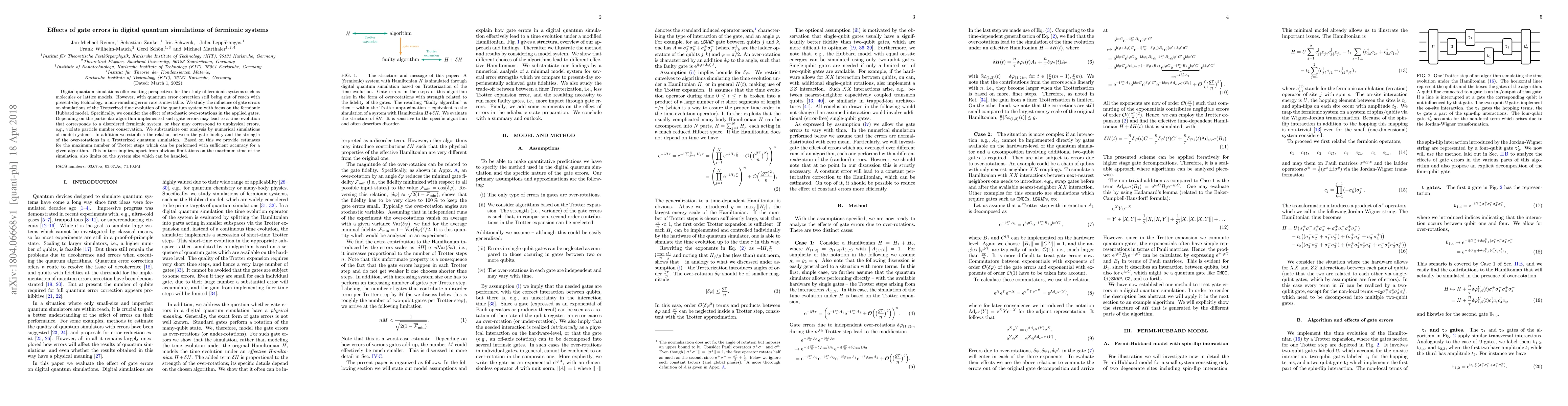 Digital quantum simulations of fermionic systems can be compromised by gate errors, leading to unphysical outcomes like violating particle number conservation. The study estimates the maximum Trotter steps that can be performed with sufficient accuracy for a given algorithm.