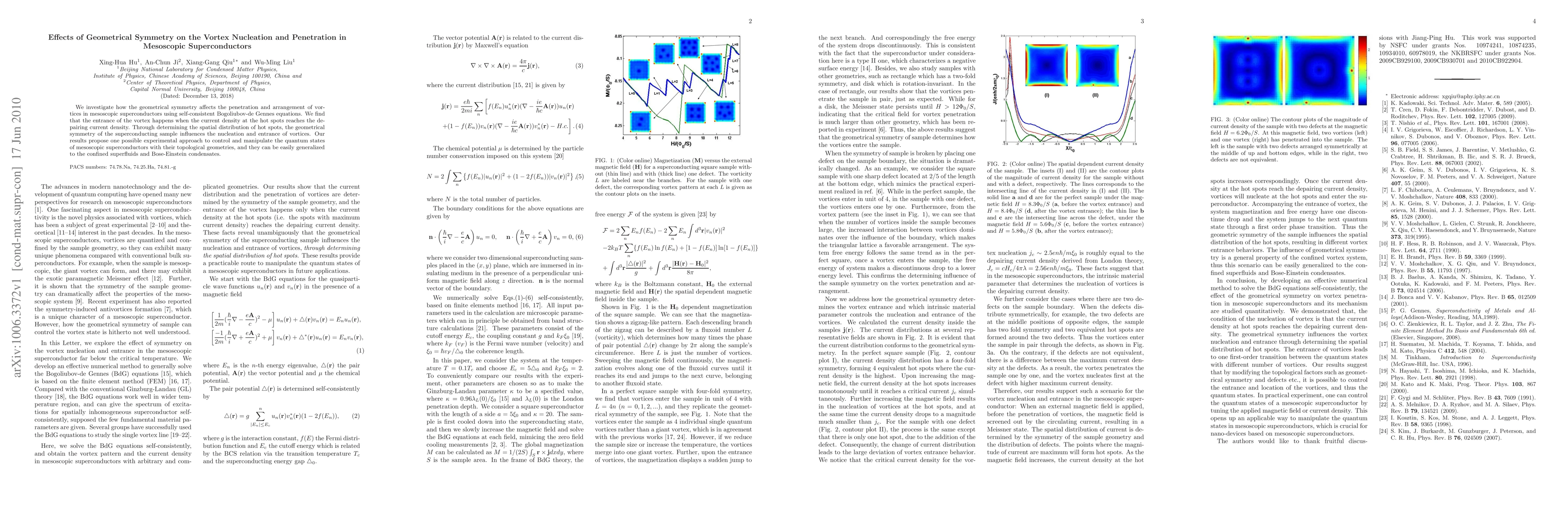 Geometrical symmetry affects vortex nucleation in mesoscopic superconductors, influencing current density distribution and allowing for experimental control over quantum states.