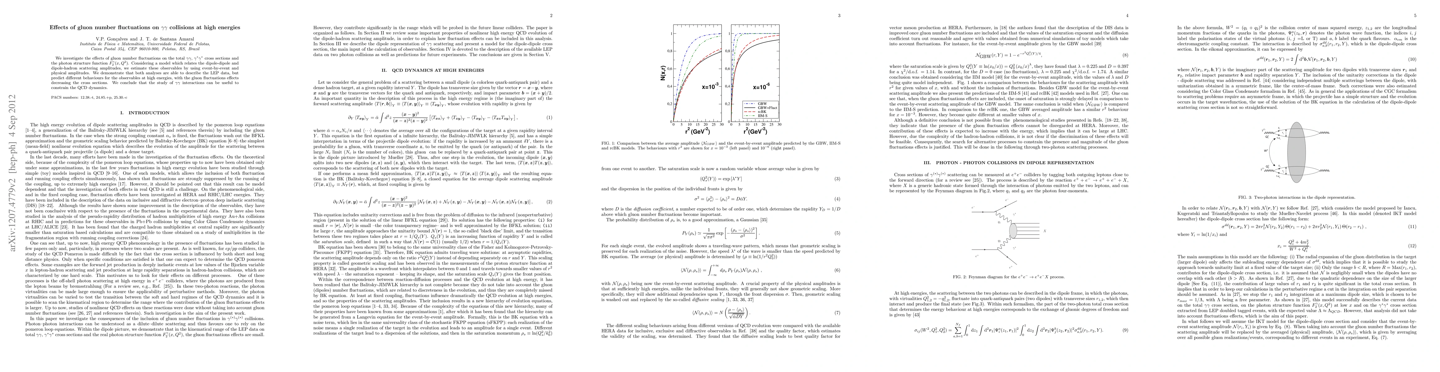This study explores how fluctuations in gluon numbers affect photon-photon collisions at high energies, finding that these fluctuations decrease cross sections and can help constrain QCD dynamics.