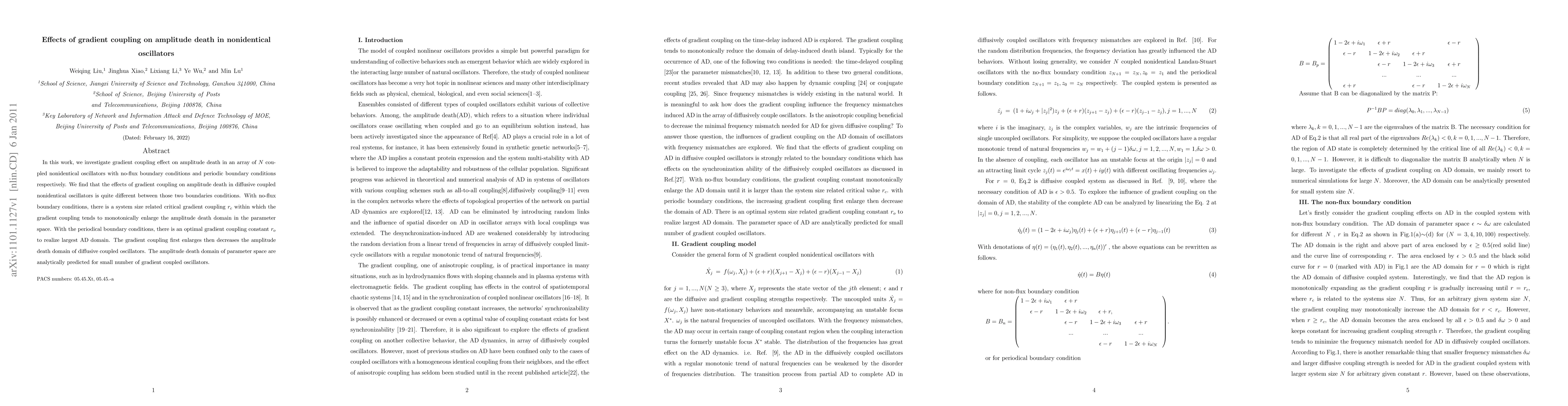 This paper investigates how gradient coupling influences amplitude death in arrays of nonidentical oscillators under different boundary conditions. It finds that gradient coupling enlarges the amplitude death domain under no-flux conditions but first enlarges then decreases it under periodic boundary conditions, with an optimal coupling constant.